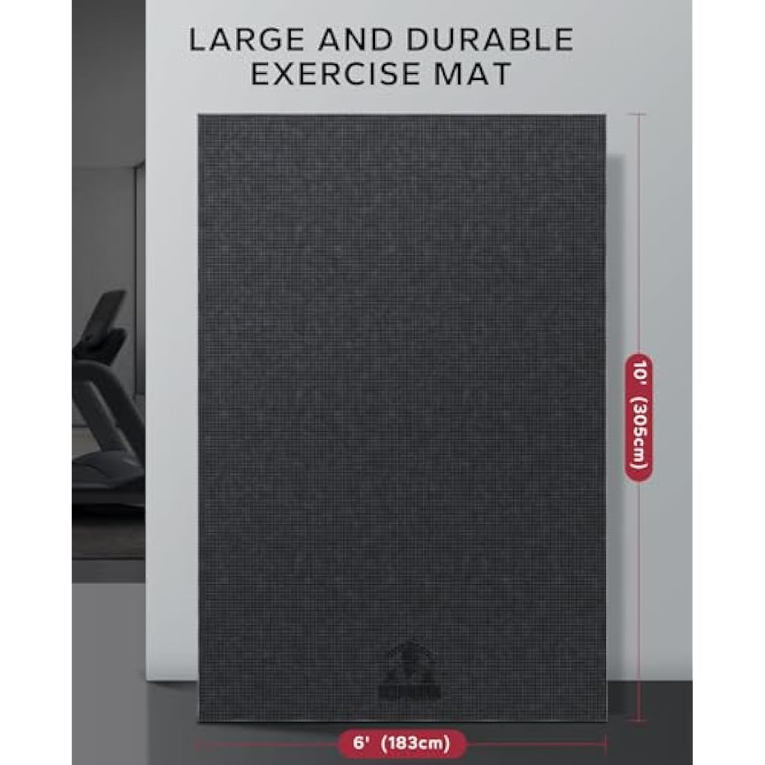 【Oversized and Versatile】This large exercise mat measures -10'x6'x8 mm (1/3 inch), two people can train on the mat. You don't have to worry about size limitations, it's perfect for any HIIT, cardio, body sculpting. It can also be used to store gym equipment or kids rugs and play mats.