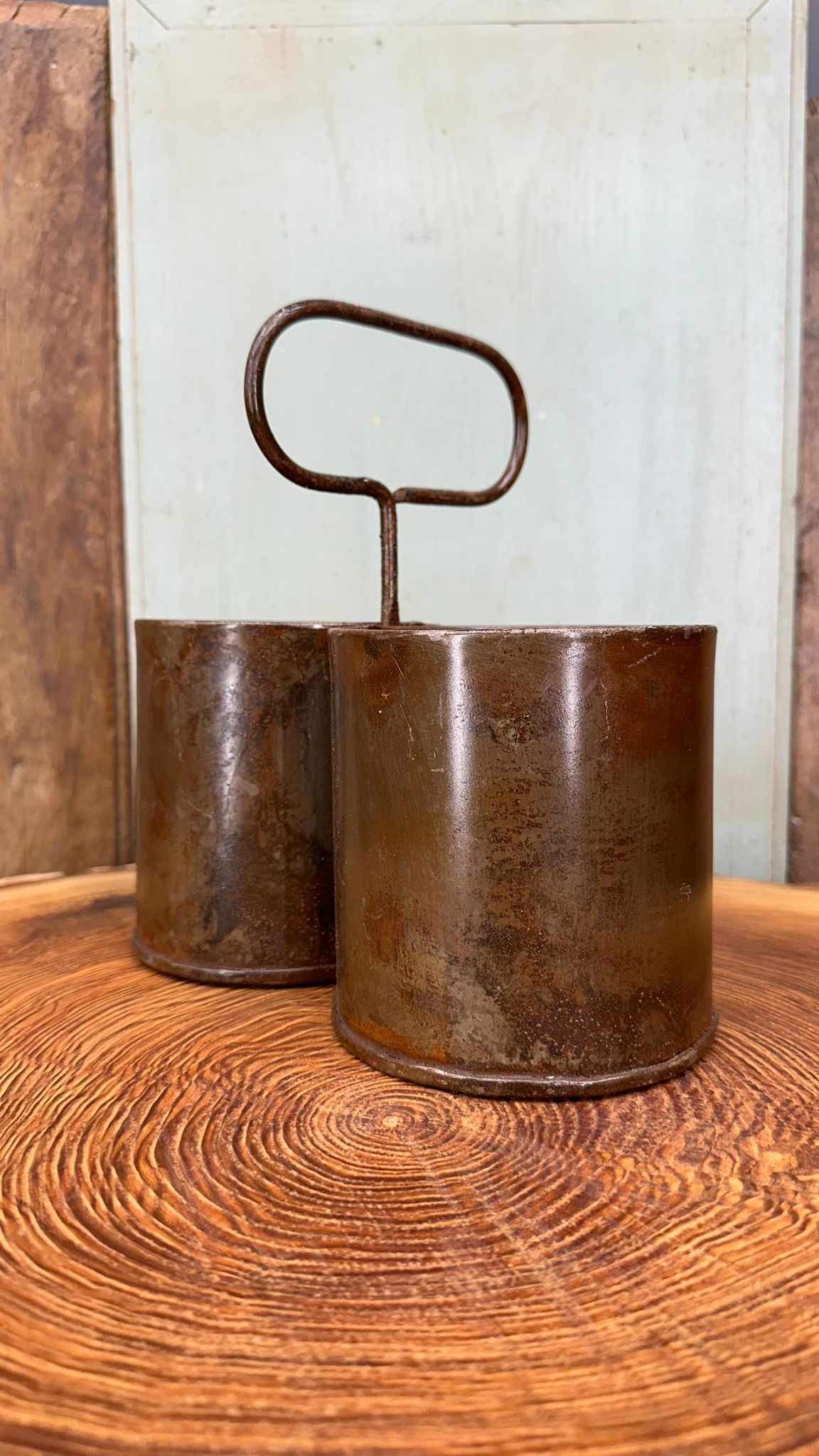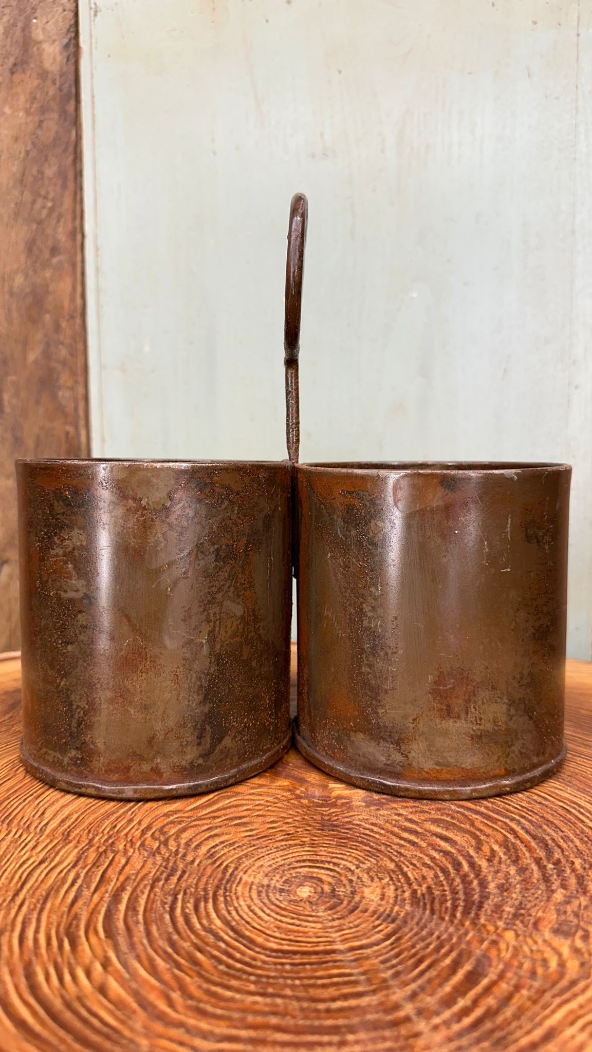This antique-style metal joined double storage tin is perfect for keeping your kitchen organised. With a height of 23cm, it provides ample storage space for your herbs, plants, stationary or cutlery. The tin comes with a handle, making it easy to carry and store in your kitchen. Can be free standing or hung on a hook