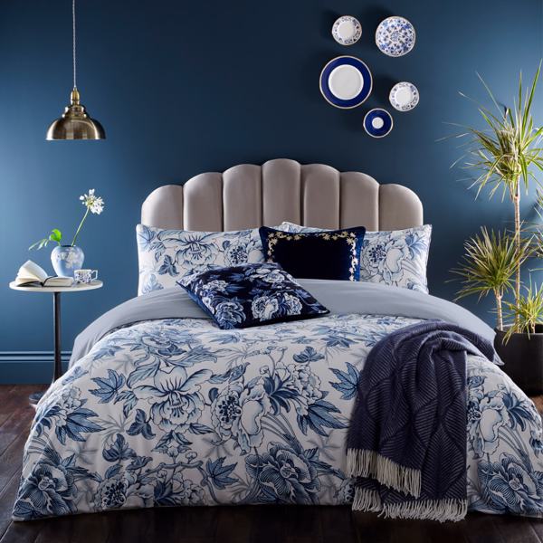 Inspired by a Wedgwood archive design from around 1810, the hibiscus flower is said to symbolise beauty, charm and youth. In striking shades of Midnight blue with decorative piped edging, floral blooms trail across this 200 thread count 100% cotton sateen bedding set. Available in double, king and super king sizes with two pillowcases included.