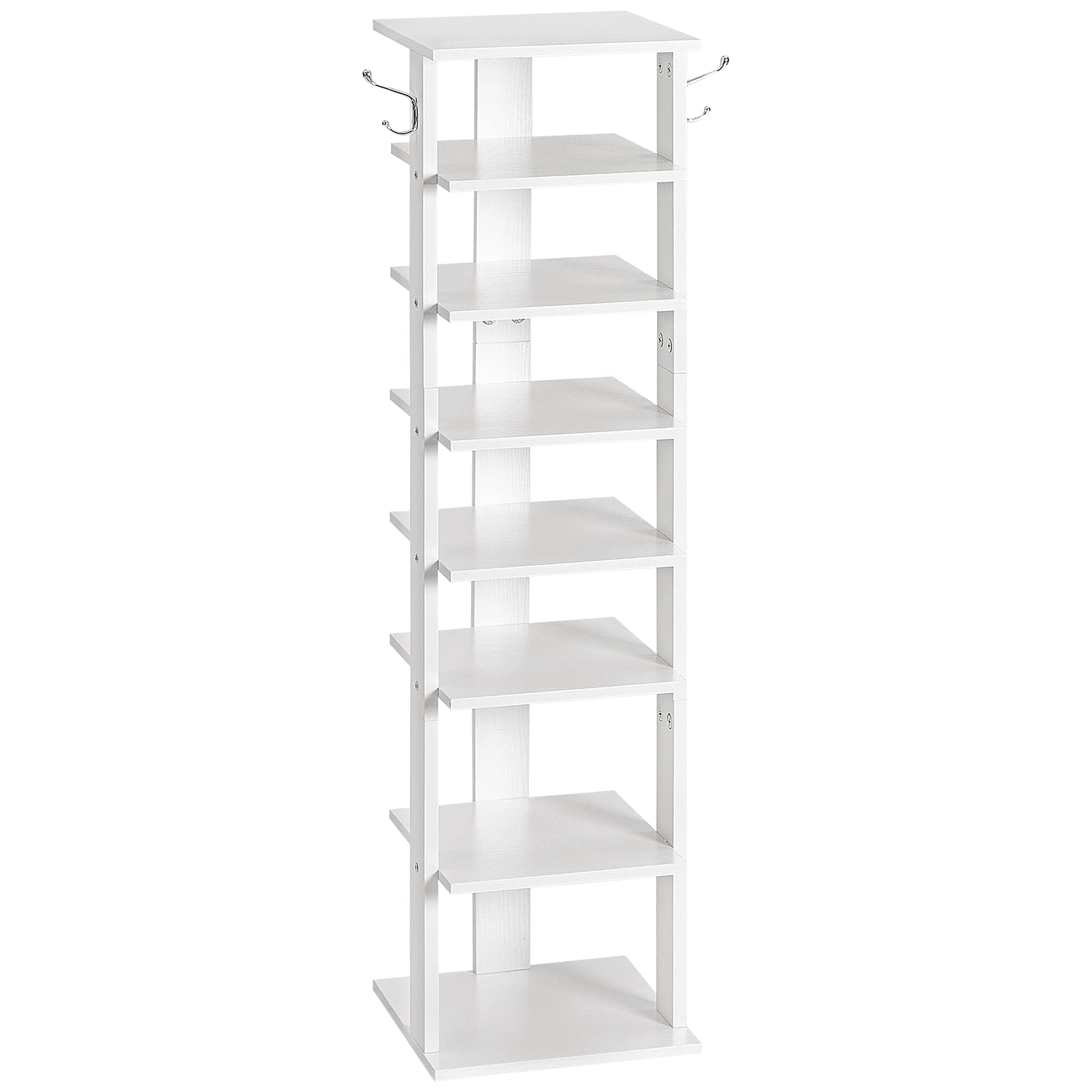HOOBRO Shoe Rack Wooden, White Shoe Rack, Tall, Narrow Shoe Storage Organizer with 2 Hooks, Slim Shoe Shelf, Vertical Shoe Tower for Entrance, Living Room, Hallway, White EWT07XJ01G1