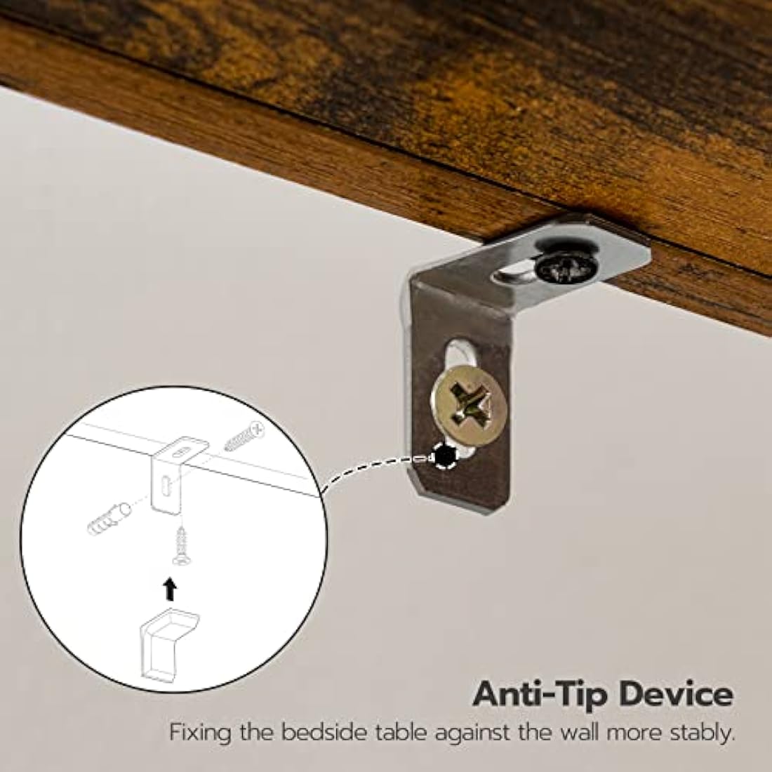 • More Details, Friendly and Secure: Each narrow bedside cabinet is equipped with 4 adjustable feet to keep level even on uneven floors without scratches. The anti-tip device is included to enhance the integral stability and prevent any tipping over