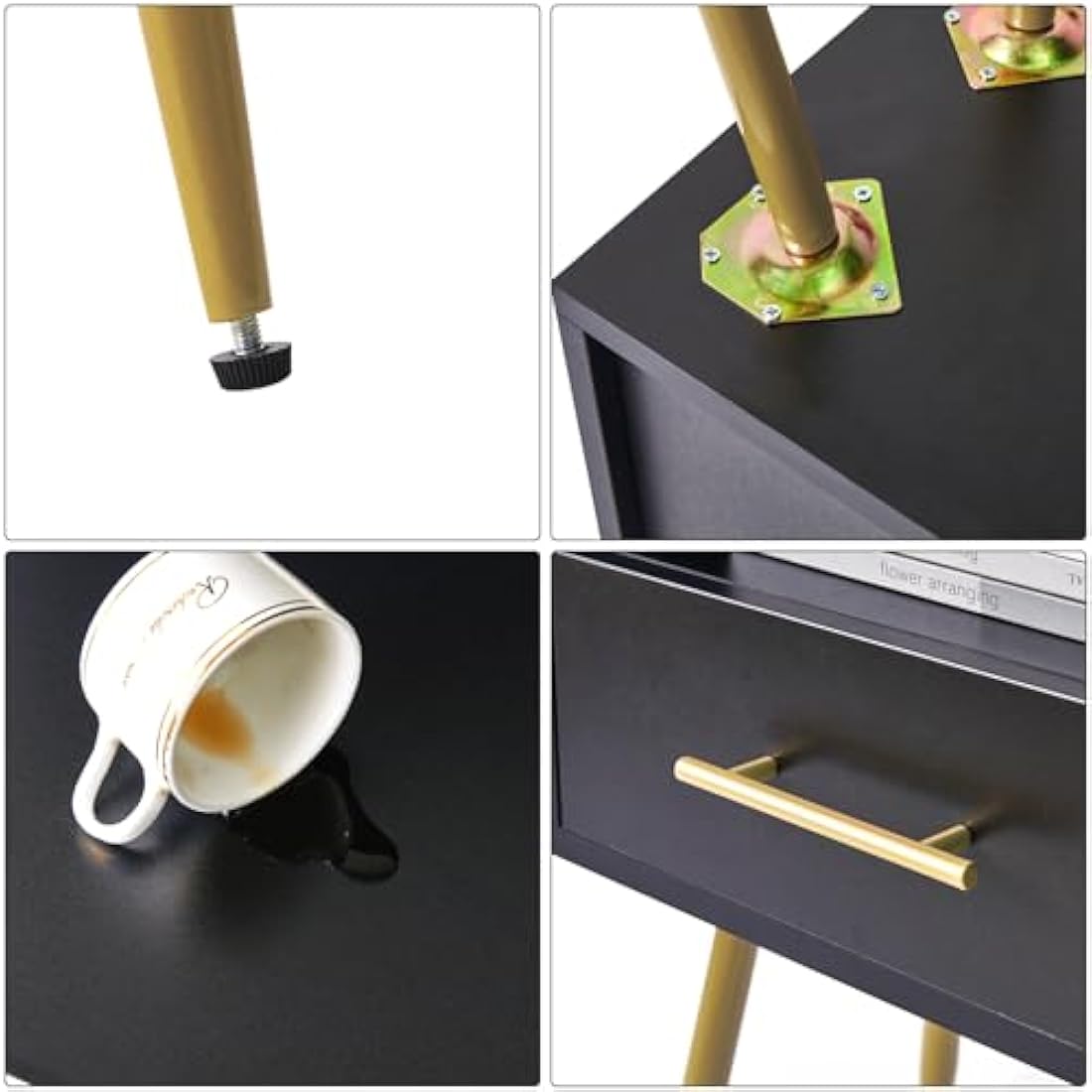 【Minimalist and Practical】Drawing inspiration from mid-century modern design, the clean lines, sleek finish, gold handles, storage drawers and tapered legs match all home décor, and the non-slip rubber pads on the bottom prevent floor scratches and reduce noise when moving.