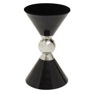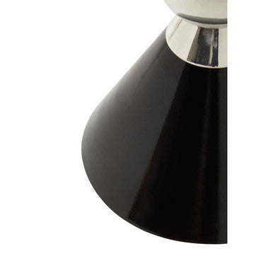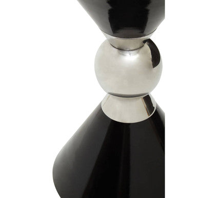 Sleek and sculptural, the Jaipur Side Table brings modern symmetry to living rooms and bedrooms. This Jaipur Side Table features a mirrored-cone silhouette with a silver-finish circle at the centre, uniting a black conical top and base. Handcrafted from robust metals, the piece delivers lasting stability while reading like a design object ideal for interiors that value clean lines and bold contrasts.