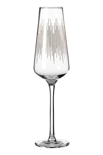 Orsina's Set of 4 Jazz Champagne Glasses blends a tapered bowl for bubble retention with radiant gold detailing. Each hand-blown piece features fine gold lines across the bowl and a coordinating rim accent for an elevated finish. The clear glass keeps sparkling drinks luminous in dining rooms, lounges, and reception areas. With Orsina, your gold champagne glasses add ceremony without excess.