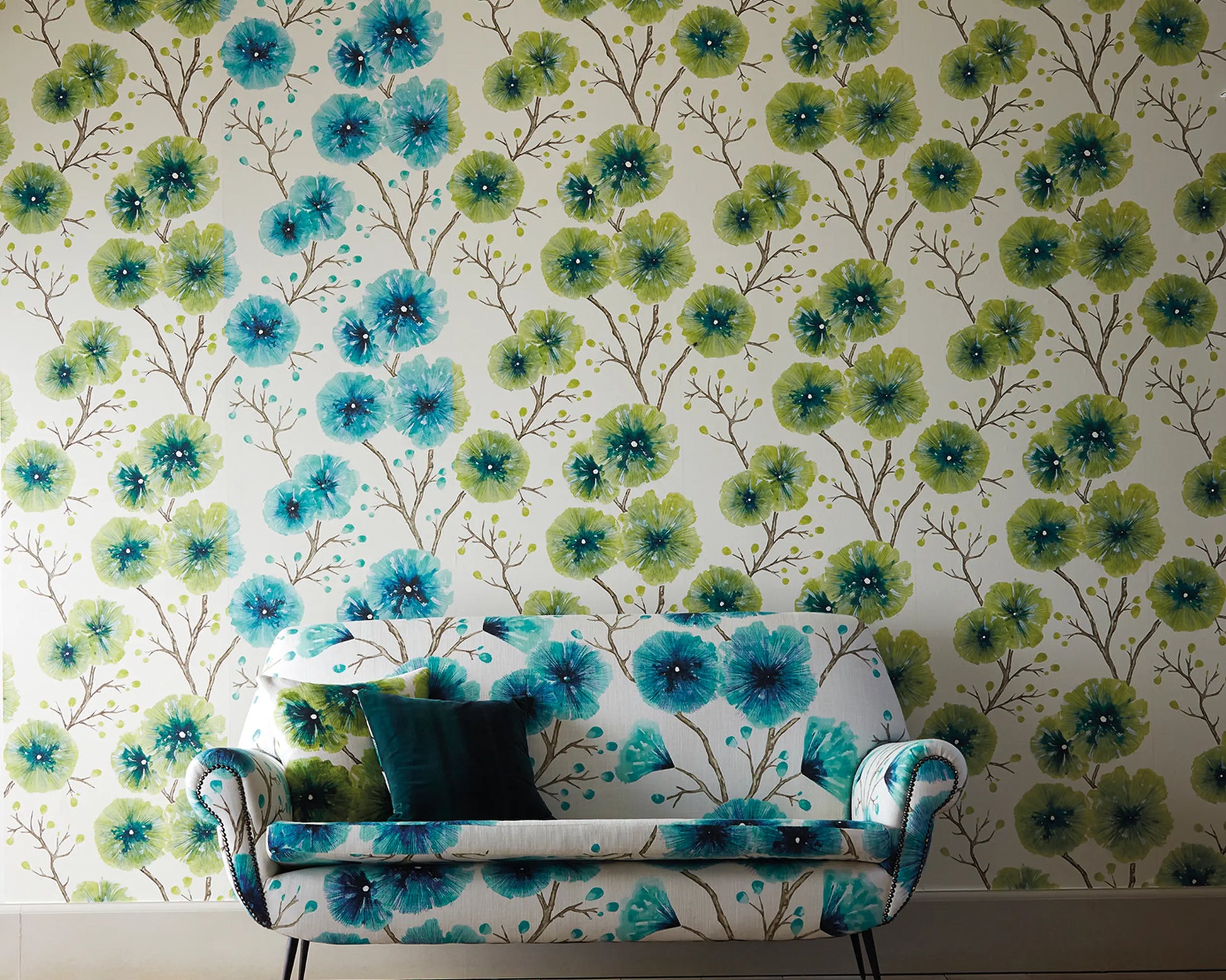 An overlapping profusion of exotic flowers fill this energetic fabric, combining a multitude of beautiful colours in the one dynamic design.