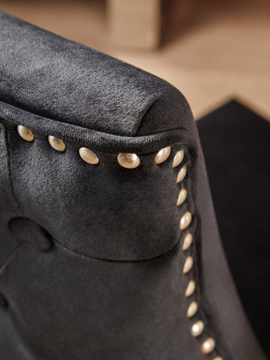 Meet your new statement seat. Our Kensington Townhouse Black Velvet Dining Chair pairs tailored elegance with everyday comfort. The plush black upholstery frames the silhouette beautifully, while the stud trim adds a refined glint that draws the eye in open-plan spaces.