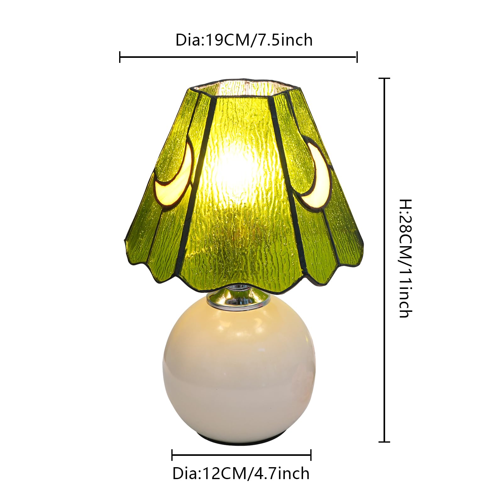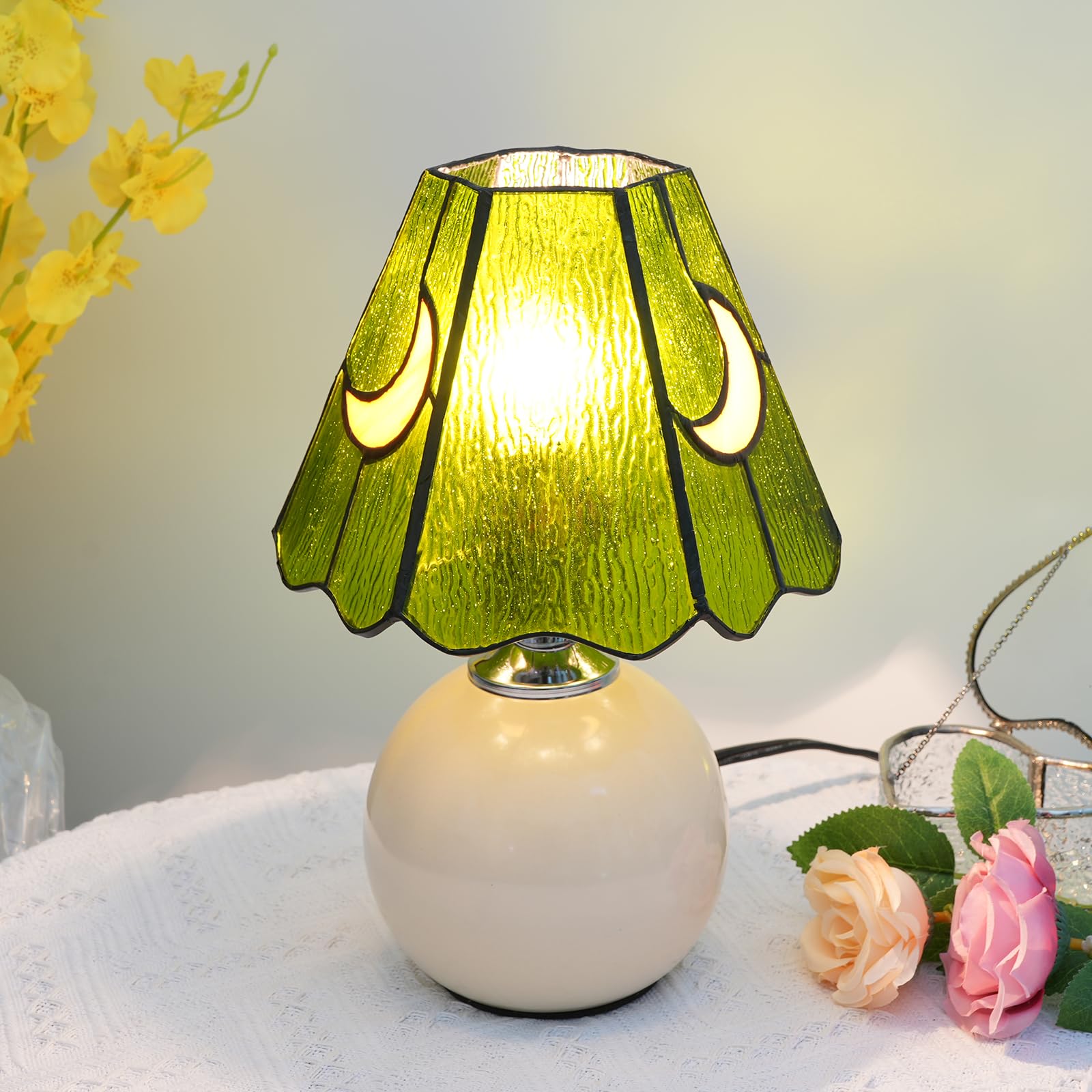 KIPHEPI Mushroom Lamp Table Bedside Nightstand for Bedroom Cute Small Tiffany Glass Moon Lamp for Bedroom Dorm Living Kitchen, Aesthetic Cute Home Decor, Green