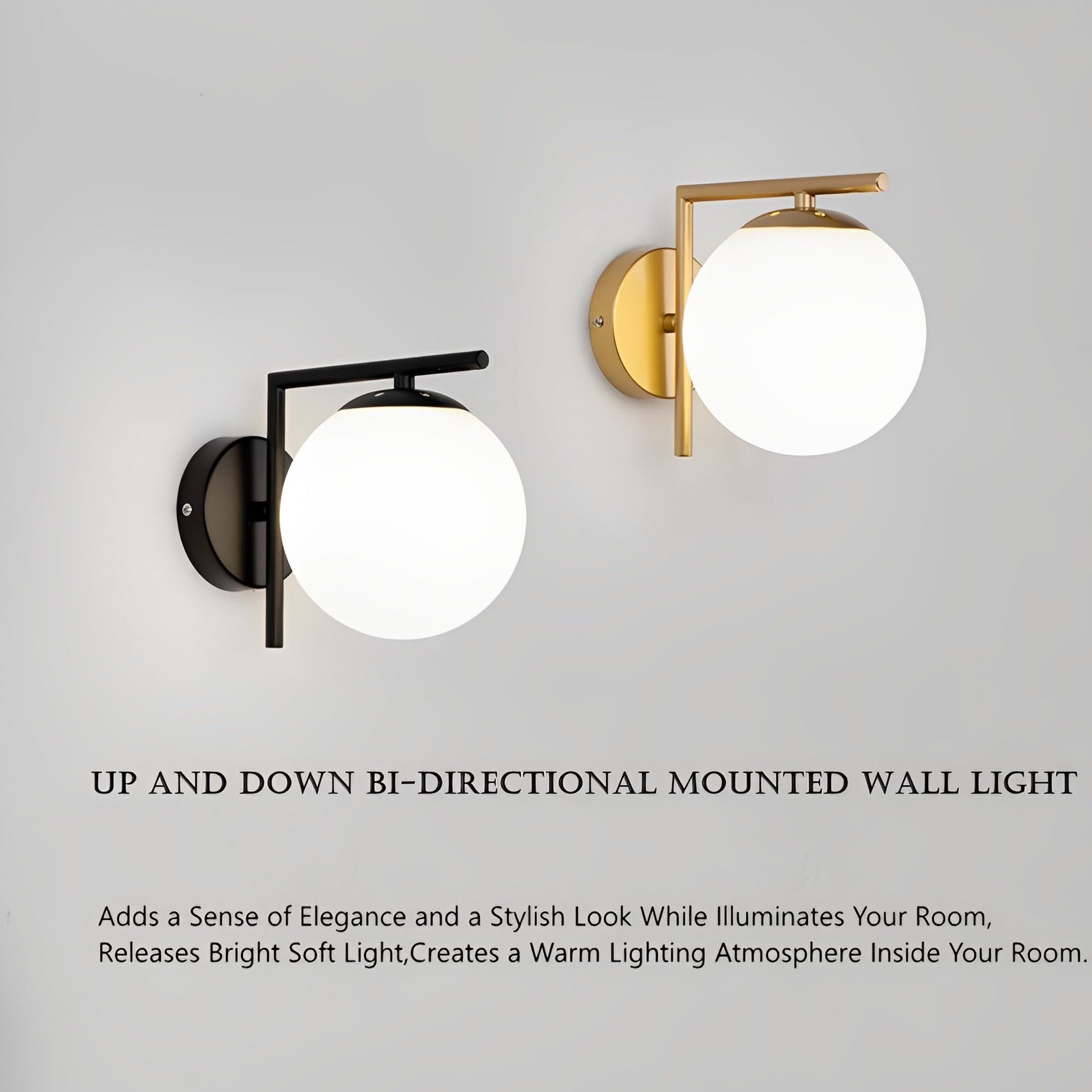 • ◆Modern Globe Wall Sconces Design:Noble and elegant modern wall sconces with premium craftsmanship adopting spinning,cutting,polishing,grinding,painting and other processes.Fitting in a variety of design styles.Matte black and bright gold lamp body accompanied by globe glass lampshade design,well protects the bulb and bright your space in max.Soft,glare-free lighting create us a warm bright and comfortable living environment,adding a nice addition to our home space.