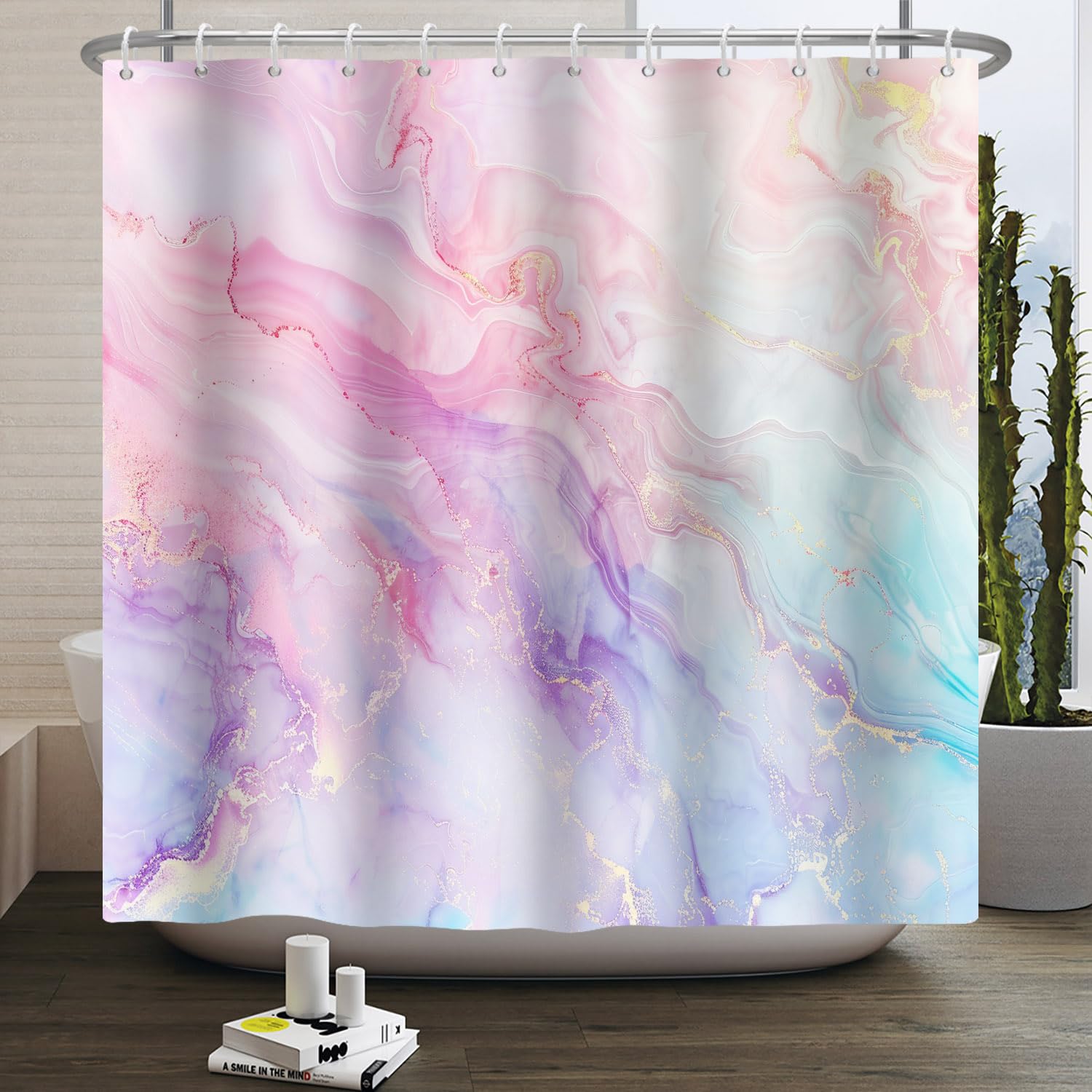 Kzzfqxb 183x183cm Shower Curtains with Plastic Hooks, Waterproof Occluded Modern Art Pink Purple Watercolor Flowing Smoke Marble Pattern for Bathtub,