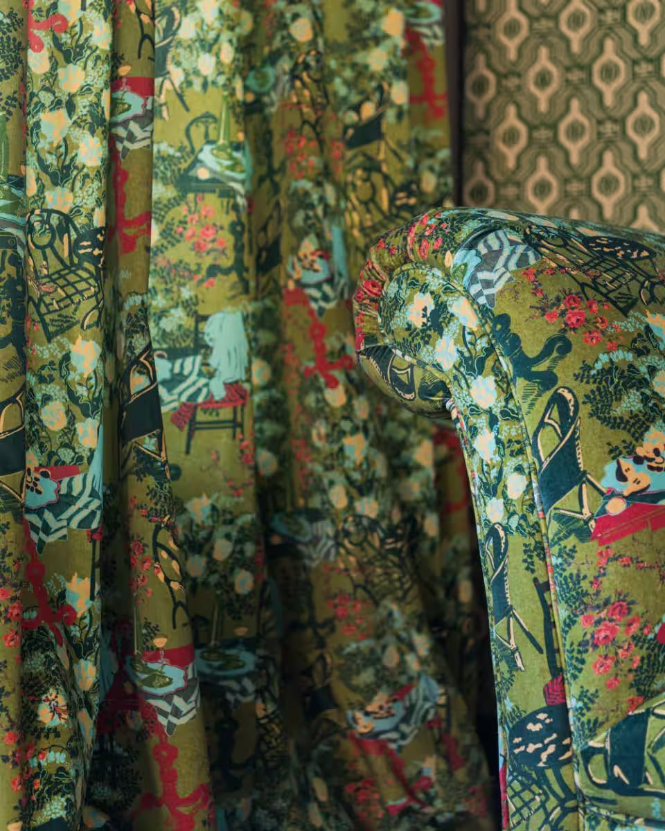 Experience the charm of a quaint Italian garden café with LA BRASSERIA. Available in two contrasting backgrounds — Fern and Salmon — this heavy velvet fabric captures the essence of rustic elegance, evoking the allure of dappled sunlight and lush foliage. From the graceful unfurling of floral blooms to the evocative portrayal of balmy summer nights, an Italian dining affair is portrayed, with its lively essence and zestful ambiance. Ideal for adorning upholstery, draperies, window treatments, and plush accents, this design imbues any interior with sophistication, featuring delicate motifs inspired by the tranquility of a Mediterranean retreat.