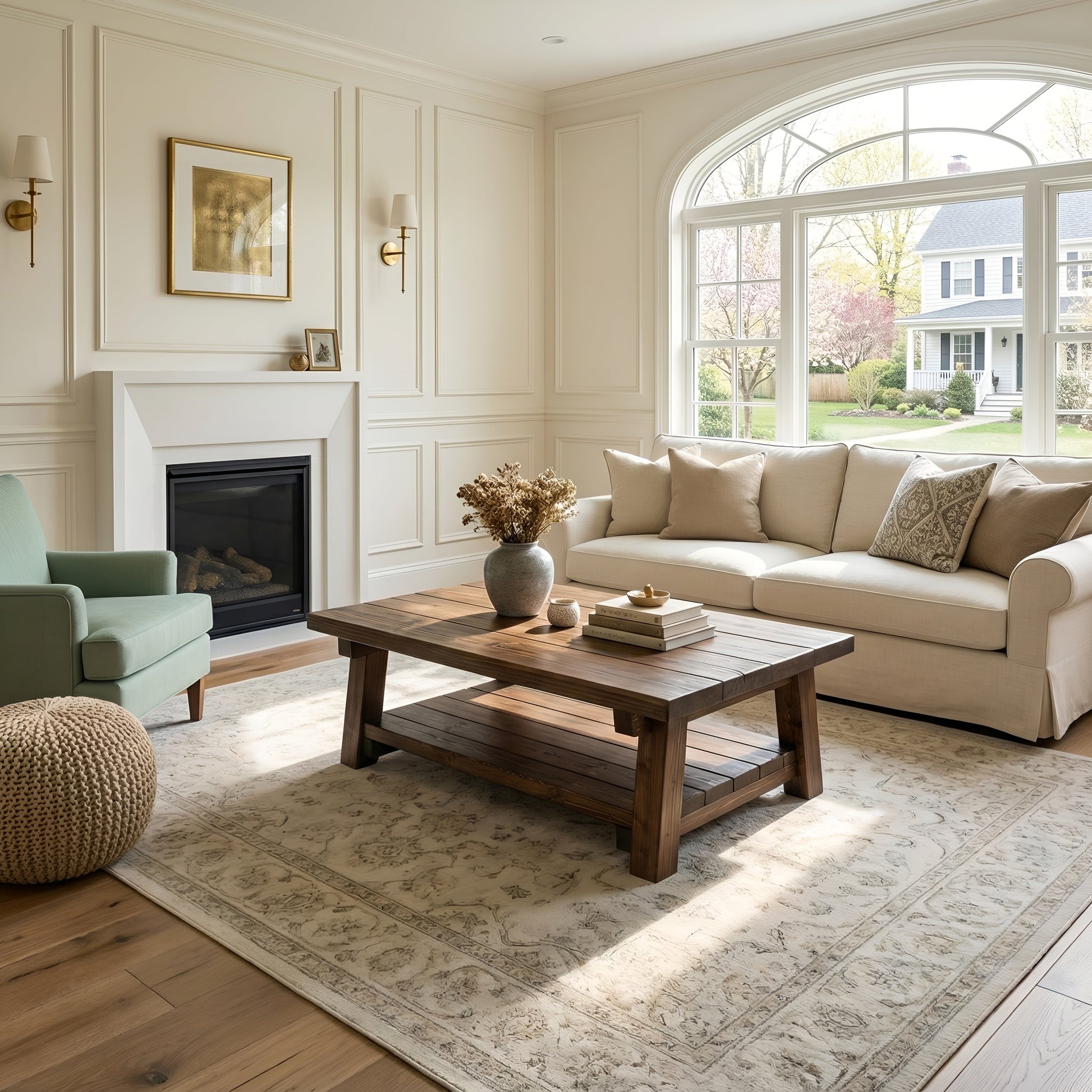 Large ARBA Rustic Wooden Coffee Table With Shelf In Walnut Colour