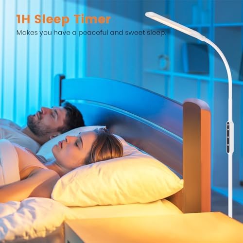Lastar LED Floor Lamp, Reading Standing Lamps with Remote and Touch Control for Living Room, Bedroom, Office with 4 Color Temperature & 4 Brightness Levels, 60 min Timer & Memory Function (White)
