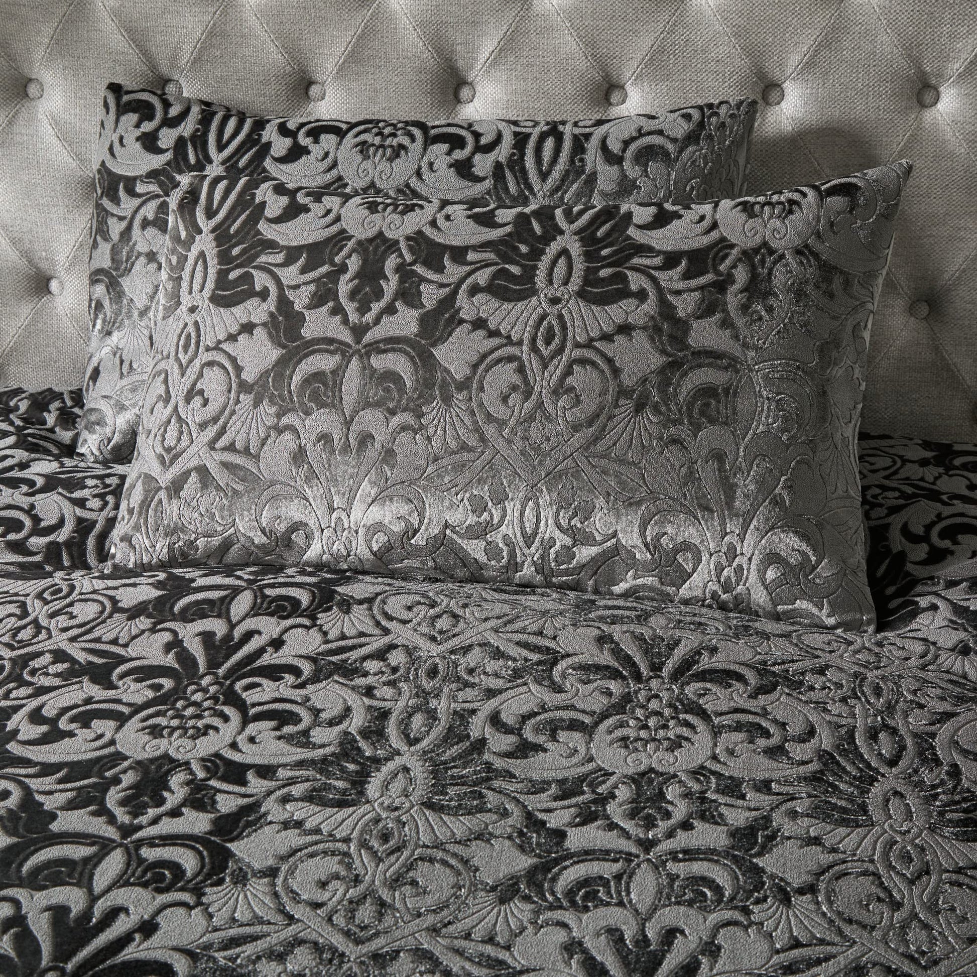 Laurence Llewelyn-Bowen - Slate Grey Embossed Damask Duvet Cover Set - Double Size (200 x 200cm) - 2 Pillowcases - Luxury Bedding Set - Velvet Damask