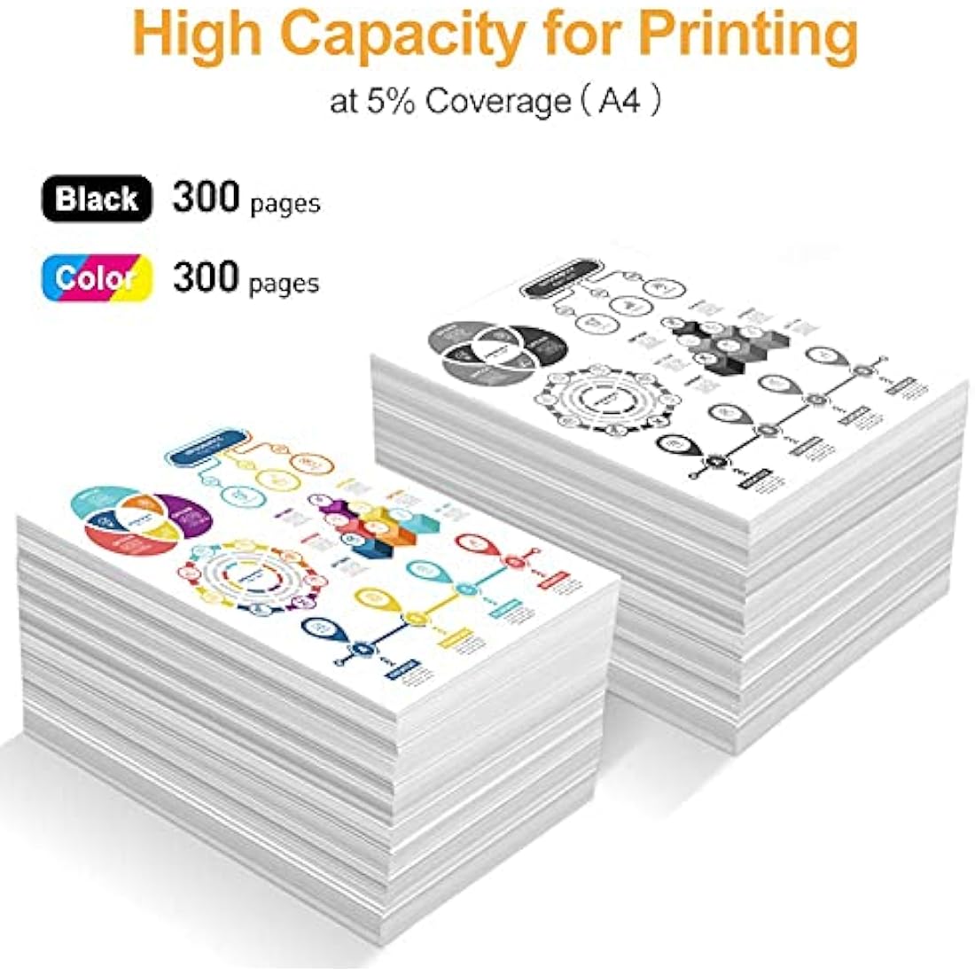 • 【High Page Yield】: 300 pages for 304XL black cartridge ,300 pages for 304XL colour cartridges (A4, at 5% coverage)