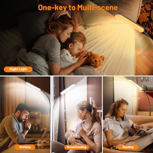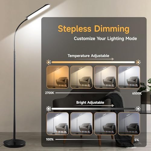 【Stable Base & Flexible Gooseneck Design】The tall floor lamp features a widened and weighted base, providing rock-solid stability that ensures it stays upright even in homes with lively children or pets – safe and worry-free. Its elegant gooseneck design offers flexibility and convenience, easily meeting your needs whether it's focused lighting for reading or crafting, or soft lighting to create a romantic atmosphere.