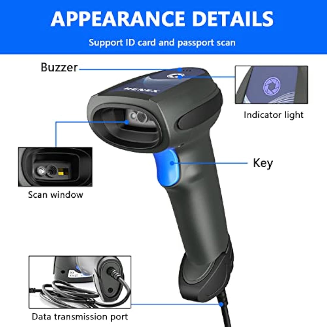 【Durable and Ergonomic Design】- Barcode Reader is built to withstand daily use in demanding environments. It features a rugged construction that can handle drops from up to 5 feet, ensuring long-lasting durability. The ergonomic design allows for comfortable handling during extended scanning sessions.