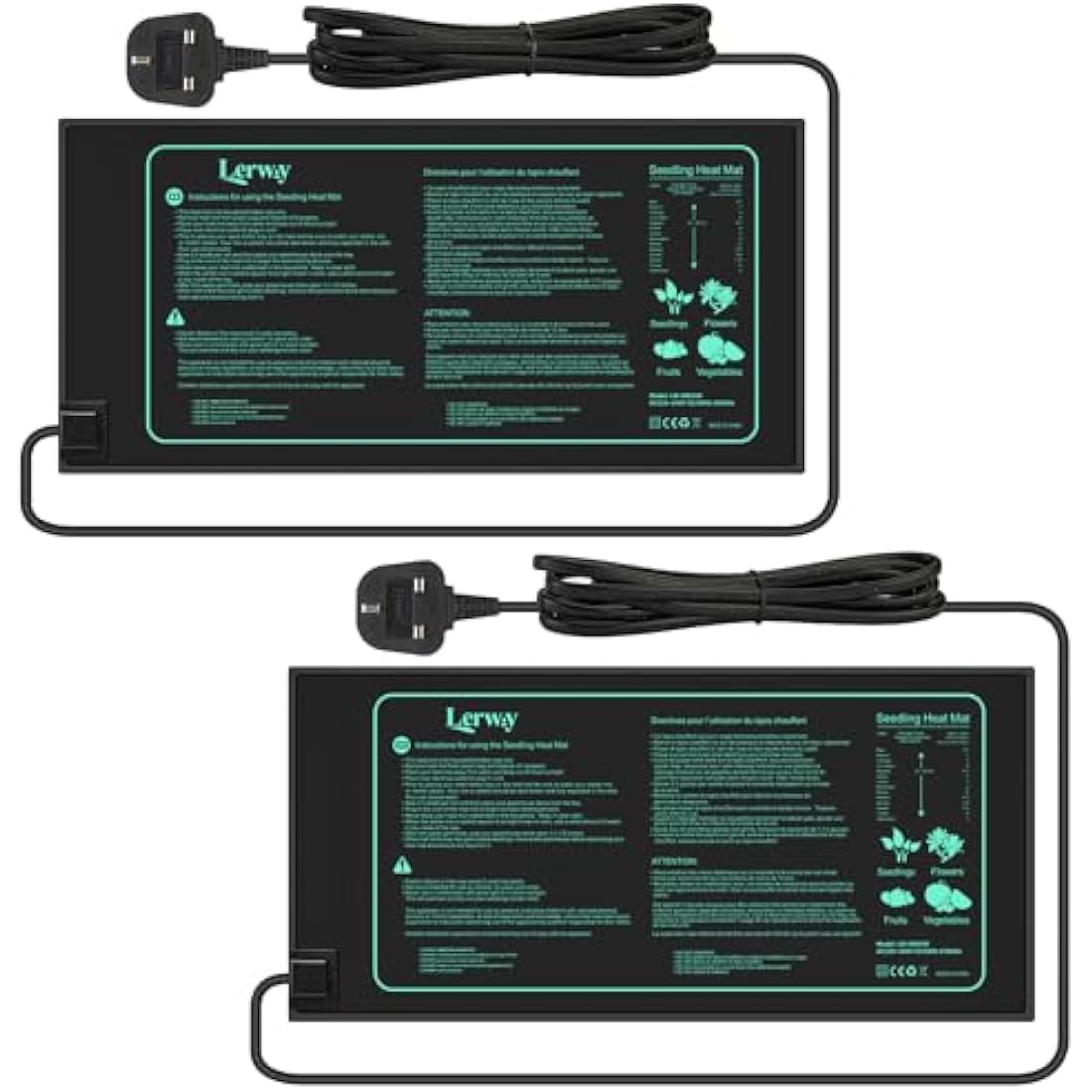 LERWAY Seedling Heating Mat Plant Warming Mat Waterproof Greenhouse Heating Pad 21W for Propagation Germination Tray Hydroponic Terrarium Reptile Amphibian Heat Mat 25.4cm*50.8cm (25.4 * 50.8cm x 2)