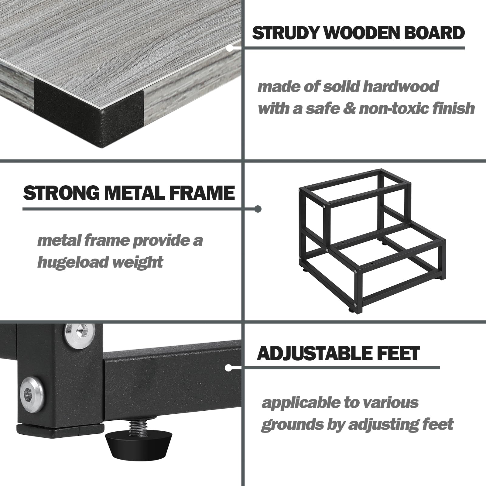 STURDY: Our foot stool consists of heavy duty iron frame and nature wood, makes it can be repeated use for years. MAX 500lbs load weight, it is approximately equal to weight of 3 adult males.