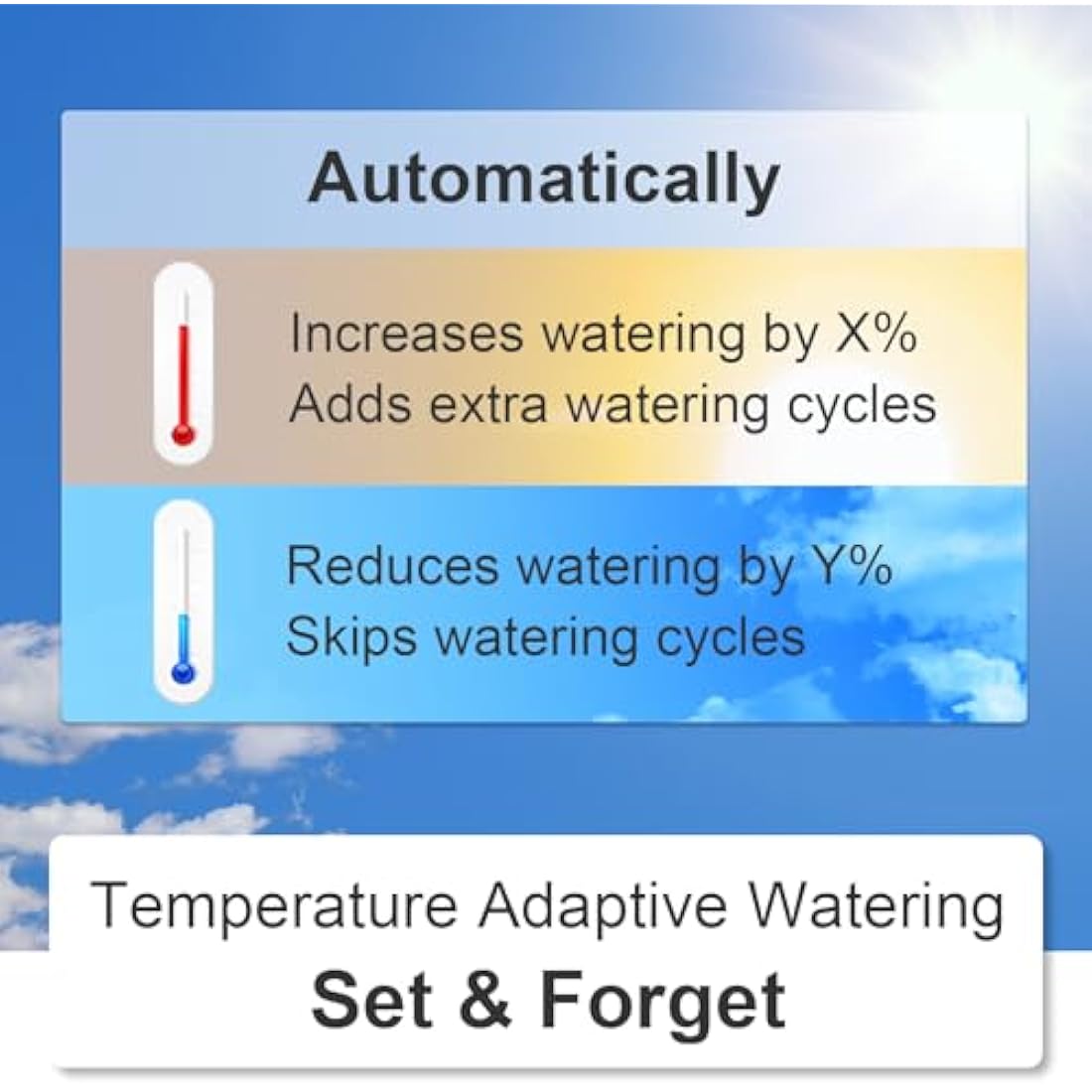 Built to Last: Our smart water timer is covered by a 2-year warranty. A UV-resistant exterior and IP66 waterproof design protects against damage from harsh weather conditions