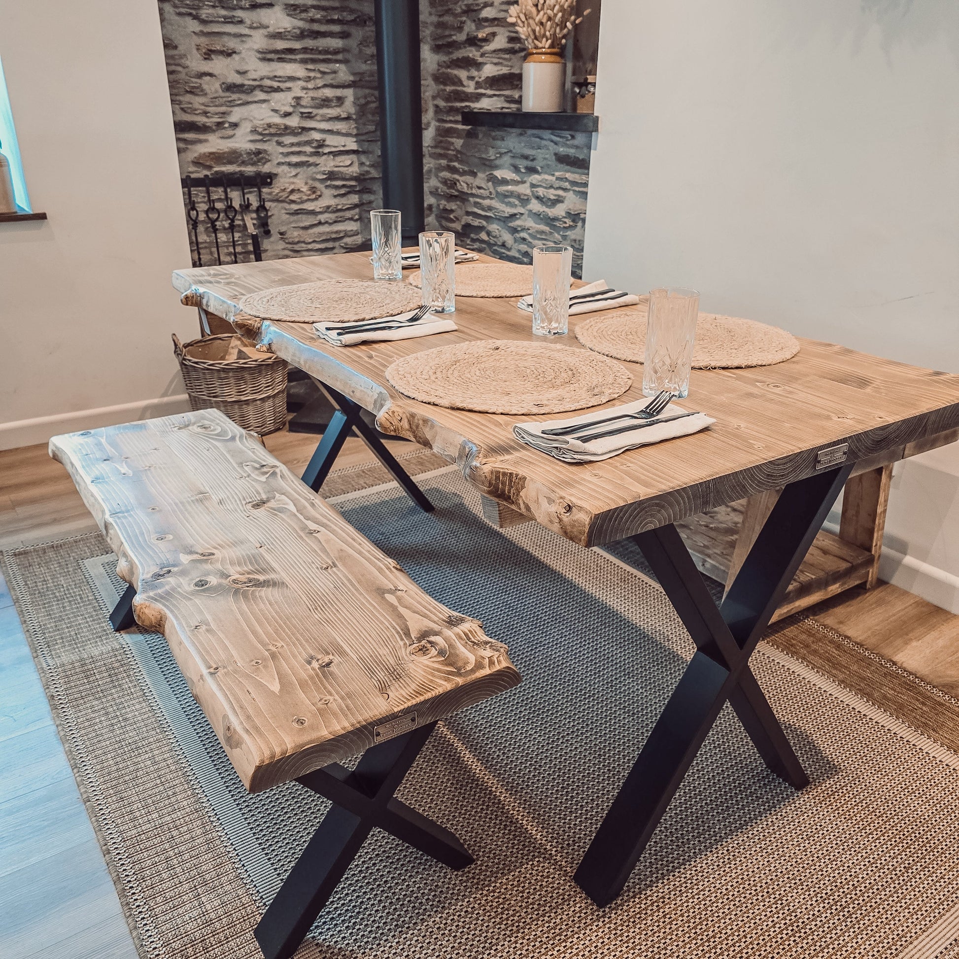 Live / Waney Edge Dining Table With X Cross Metal Legs