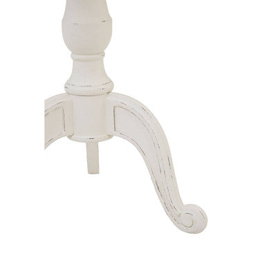 Orsina carves a bayur wood pedestal with three scrolled feet, then finishes the piece in a lightly textured white that emphasises its detailing. This round white pedestal table is ideal for breakfast corners, entry nooks, or as a display surface in living rooms.