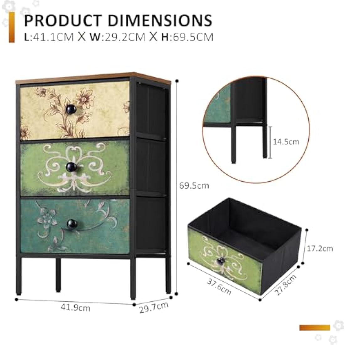【Unique Style】The vintage floral pattern of bedside drawers shows understated luxury ,it can add charm and elegance to your space.The fabric dressing table is perfect for bedrooms ,living rooms ,closets ,entryways ,guest room etc.