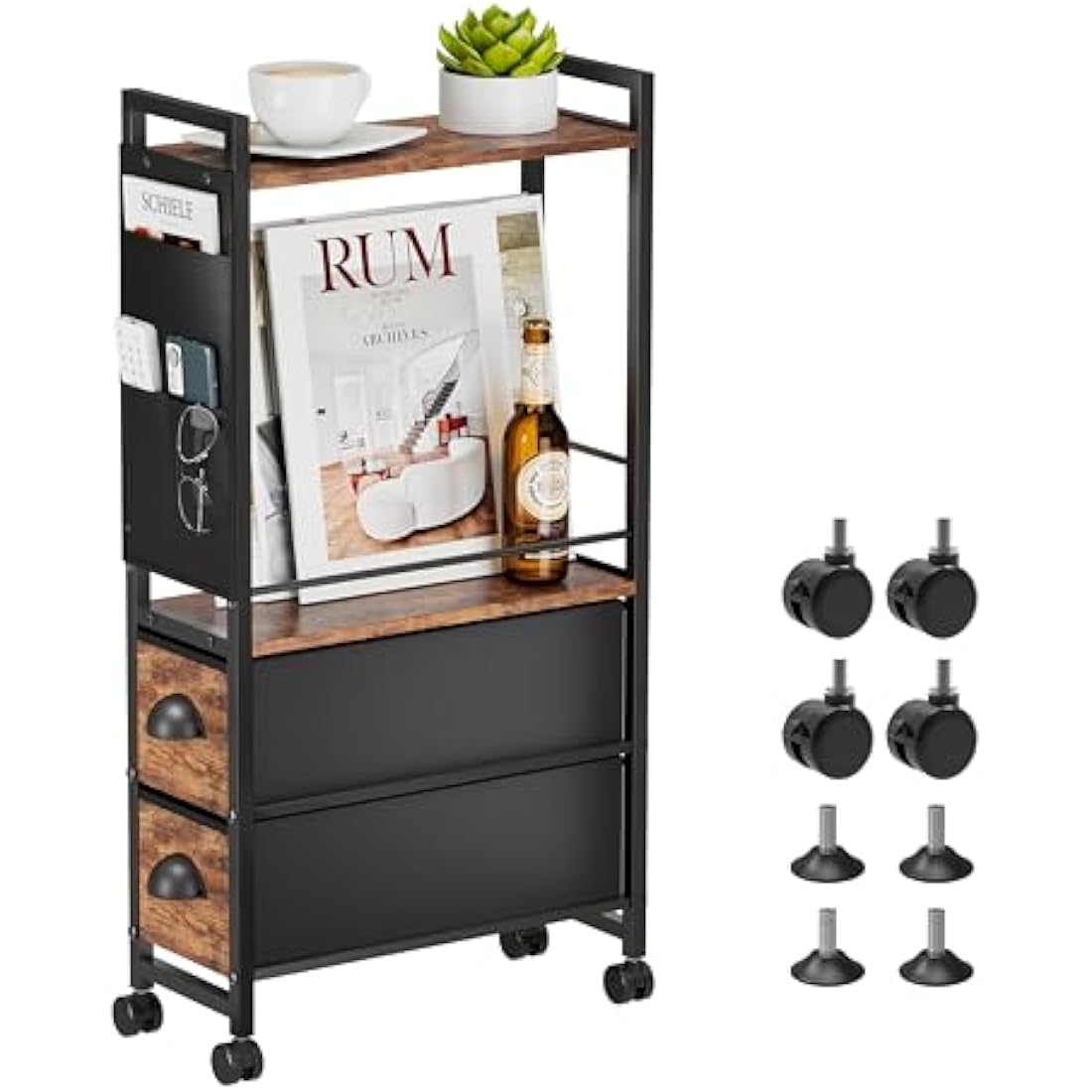 Adjustable Feet&Wheels - Stable& Easy to Move: We offer two accessories to choose from: adjustable feet and wheels; The adjustable feet allow the small end table to remain stable on rough and uneven floors. The wheels allow you to move the Slim Side Table anywhere& anytime, it is a super convenient option
