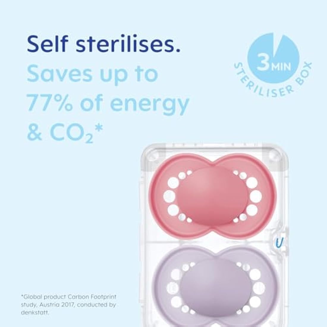 • Made for busy parents: Comes with a self-sterilising travel case, so you can clean the soothers in the microwave quickly and easily, even when you're on the go