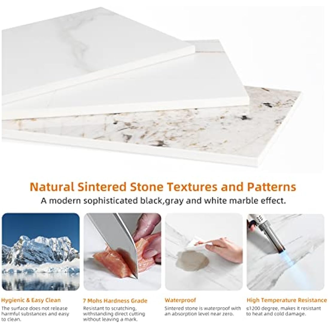 Genuine Sintered Stone Table Top - Our white marble table top is made with special technology,sintered stone feature Mohs hardness 7 grade - Resist scratching,High temperature resistance - ≤1200 degree,do not produce any physical changes of shrinkage,cracking,discoloration,zero penetration on surface,anti stain,easy to maintain and can stand the test of time,gold table can still keep as new after use many year