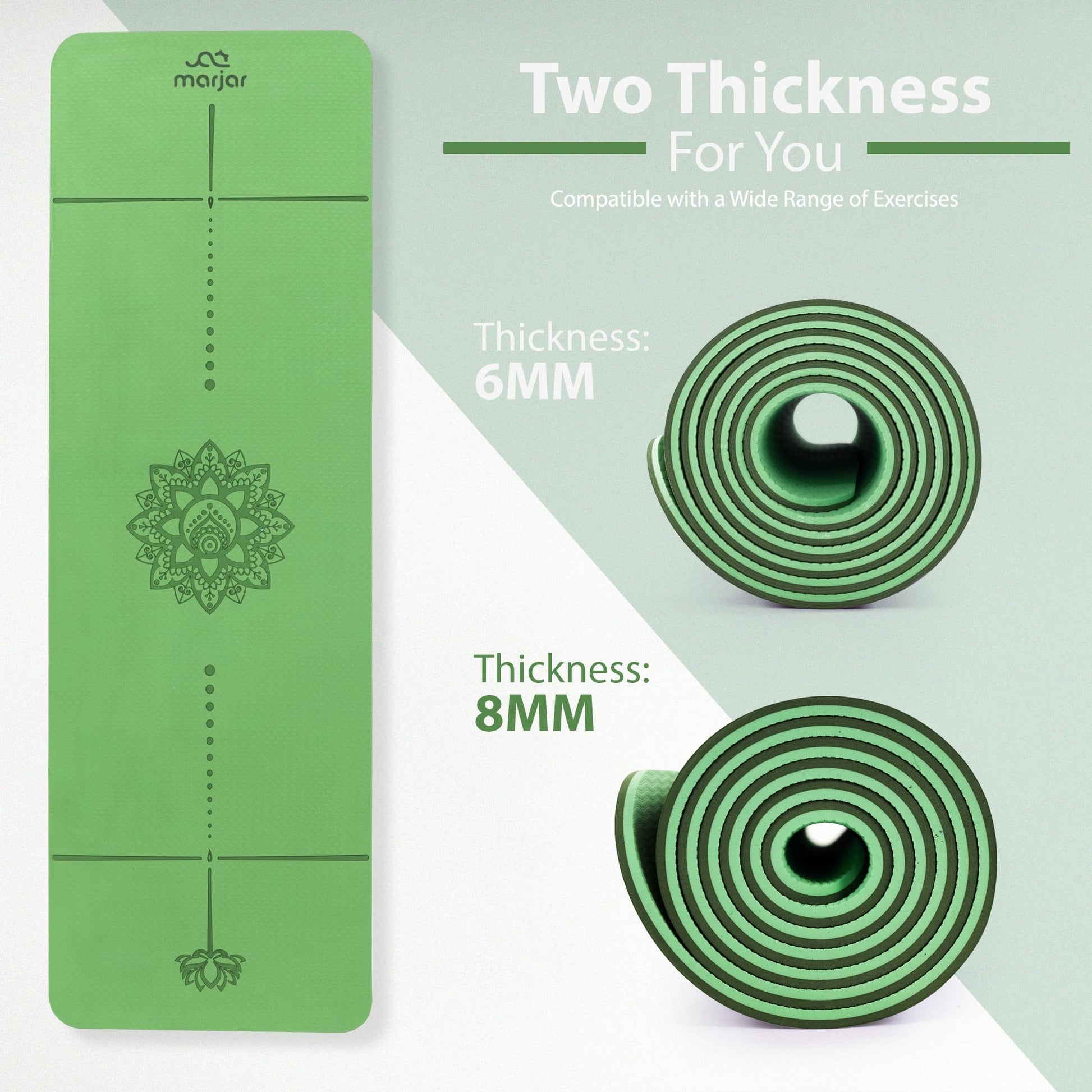 Marjar Yoga Mat Non Slip Exercise Mat TPE Eco Friendly Anti-Tear Yoga Mats for Women 1 3 Fitness Mat for Home Pilates Mats with Carrying Strap Sports & Outdoors Categories Fitness Yoga Mats Marjar
