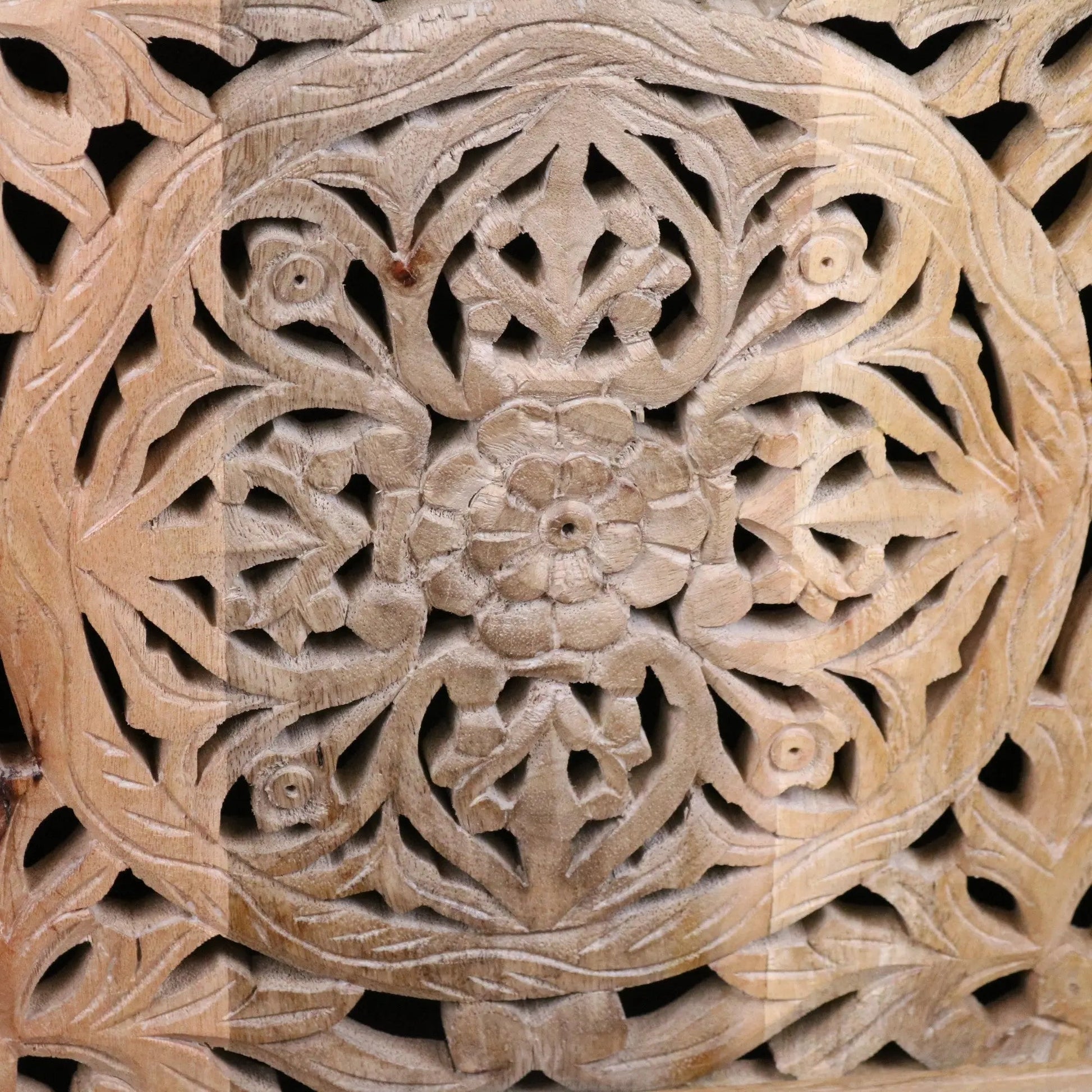 Hand-Carved Detail: The single door showcases a beautifully carved floral design, inspired by traditional North Indian motifs.