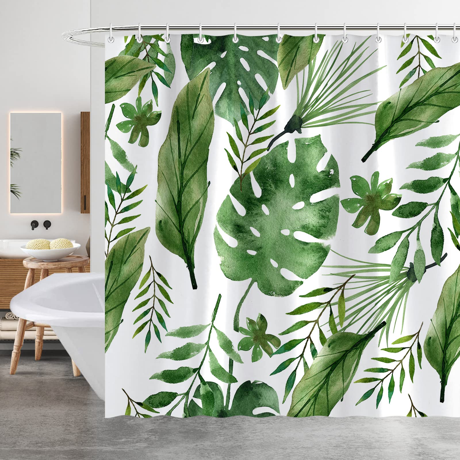 Minicoco Shower Curtain Mould Proof Mildew Resistant Bathroom Shower Curtains Waterproof Shower Curtain 100% Polyester Green Shower Curtains with 12 Hooks, 180 x 180 cm (Tropical Rain Forest)