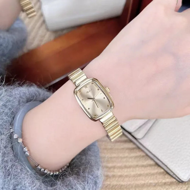 Minimalist Retro Roman Dial Quartz Steel Strap Watch Elegance Simplicity Fashionable Women's Square Face Mineral Glass Lens