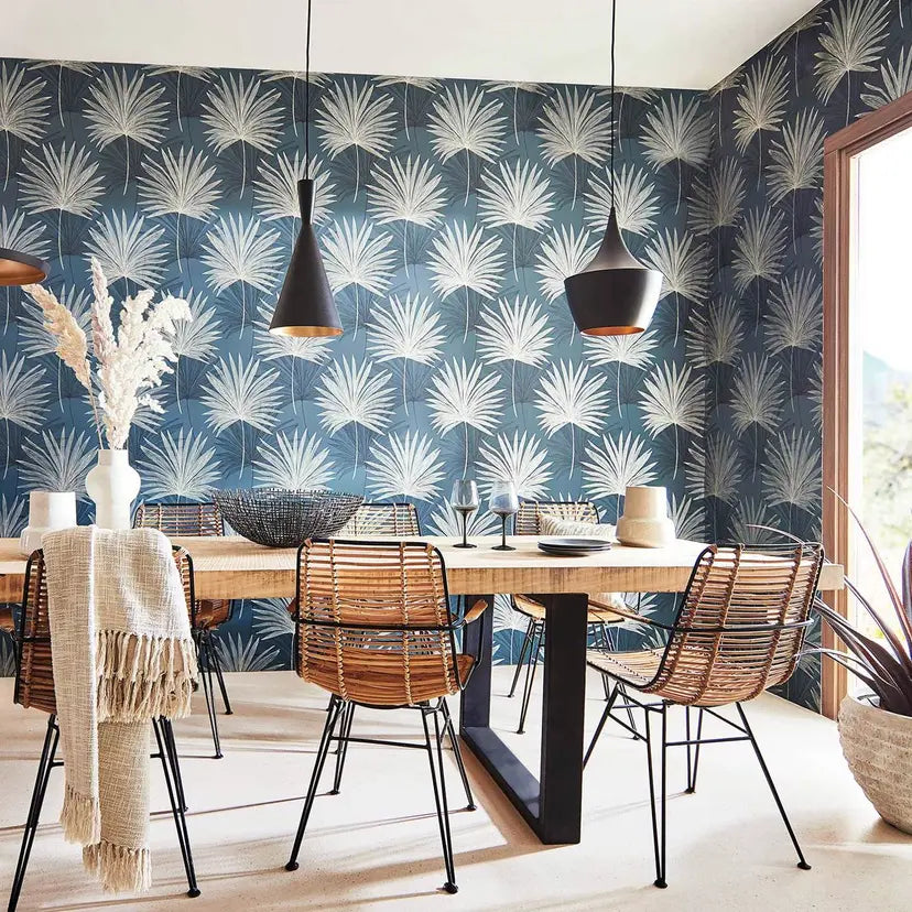 With a relaxed, hand drawn look, large scale sketchy palms fan out across this rotary printed design. Choose from darker tones, dramatic and glamourous or the pared back colourways of Pewter, Chalk and Pebble.