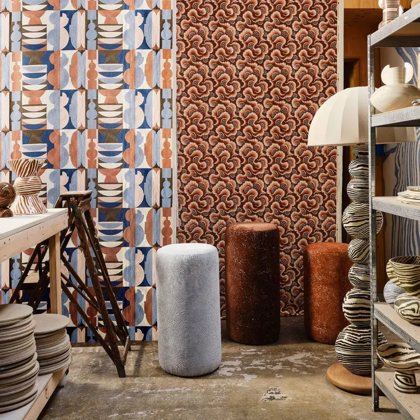 An archival print selected by Henry, Ludaix has a nostalgic feel, drawing back to a French family home where Henry spent many summers. As a botanical in this collection, Ludaix feels different and conversational. A Japanese-style silhouette, the featured floral has a ruffled Ikat brush edge. Also available in a wallpaper, the scale of the original archive design has been translated here.