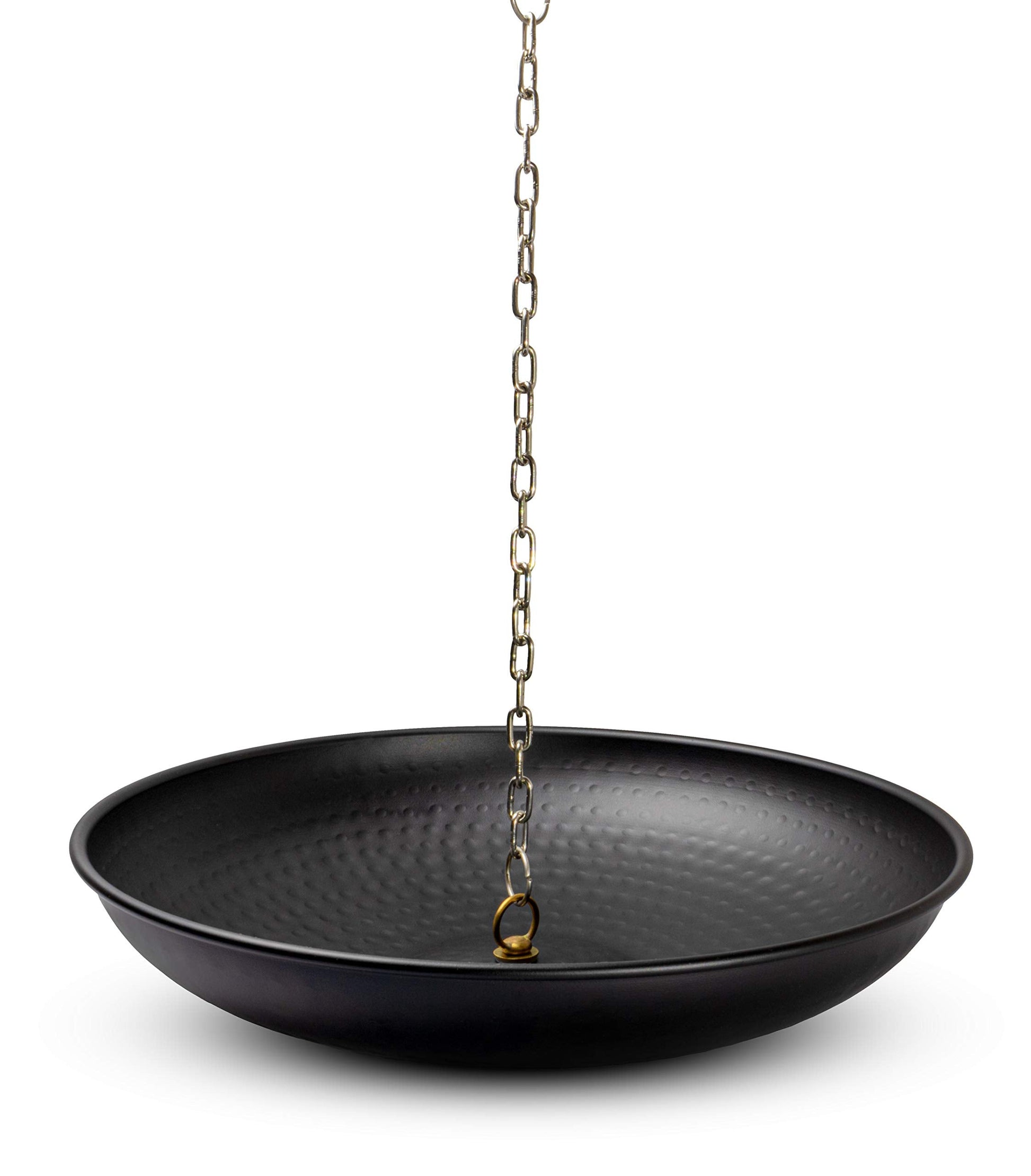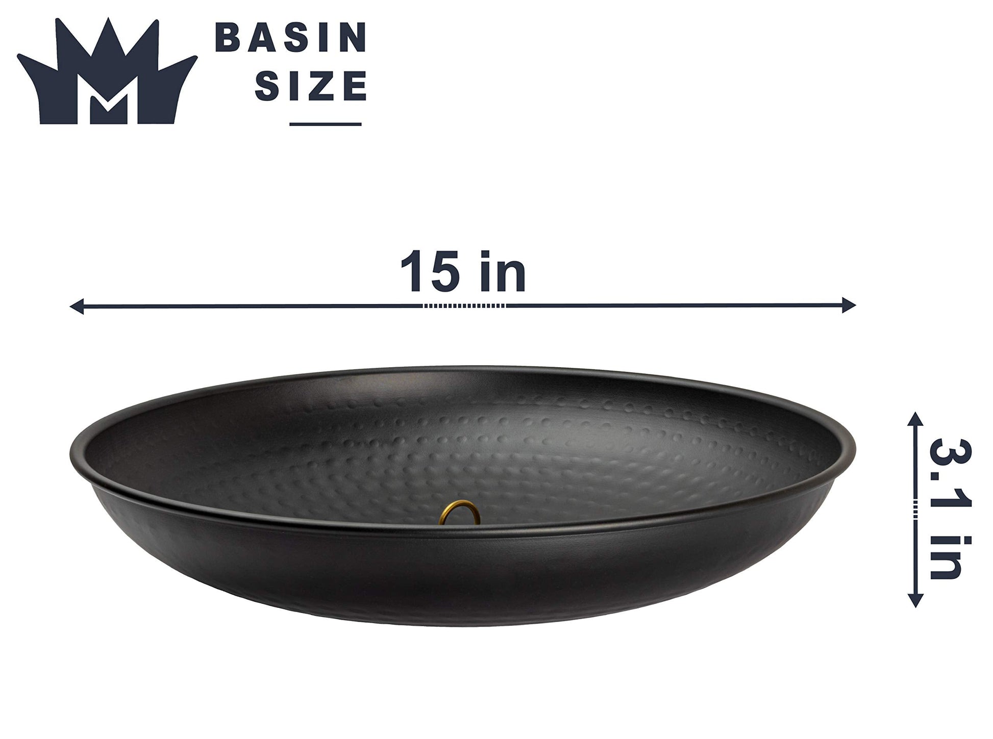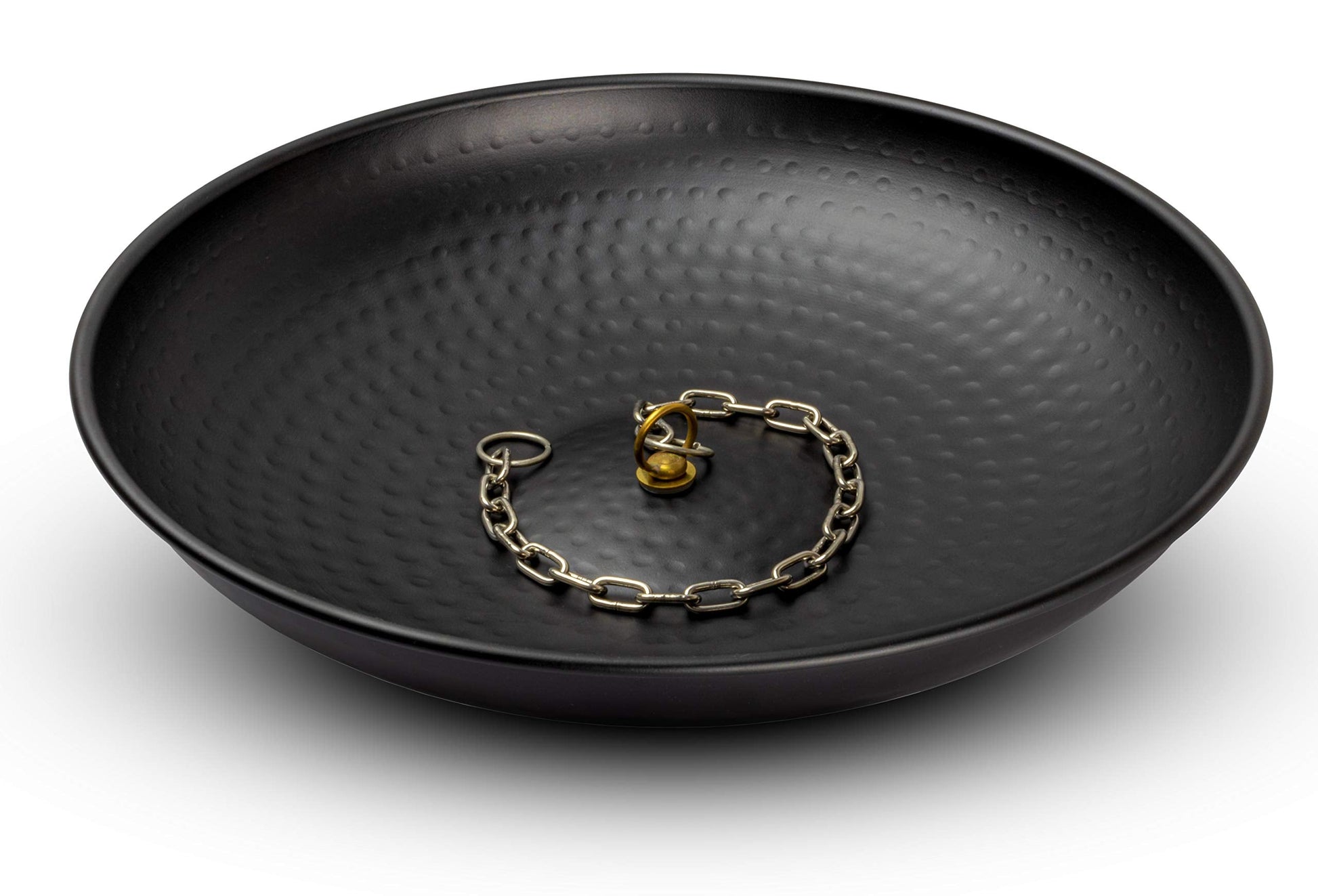 Monarch Rain Chains 15 inch Basin Hand Hammered Rain Chain Anchoring Basin Downspout Gutters for Outdoor Garden, Lawn and Patio Water Feature, 15 inch Diameter, Matte Black
