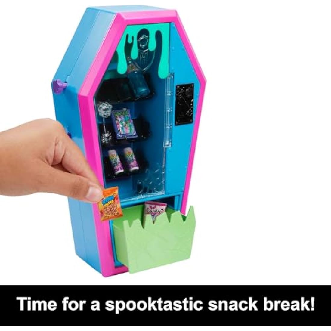 Monster High Student Lounge Playset, Doll House Furniture and Themed Accessories with Two Pets and Working Vending Machine