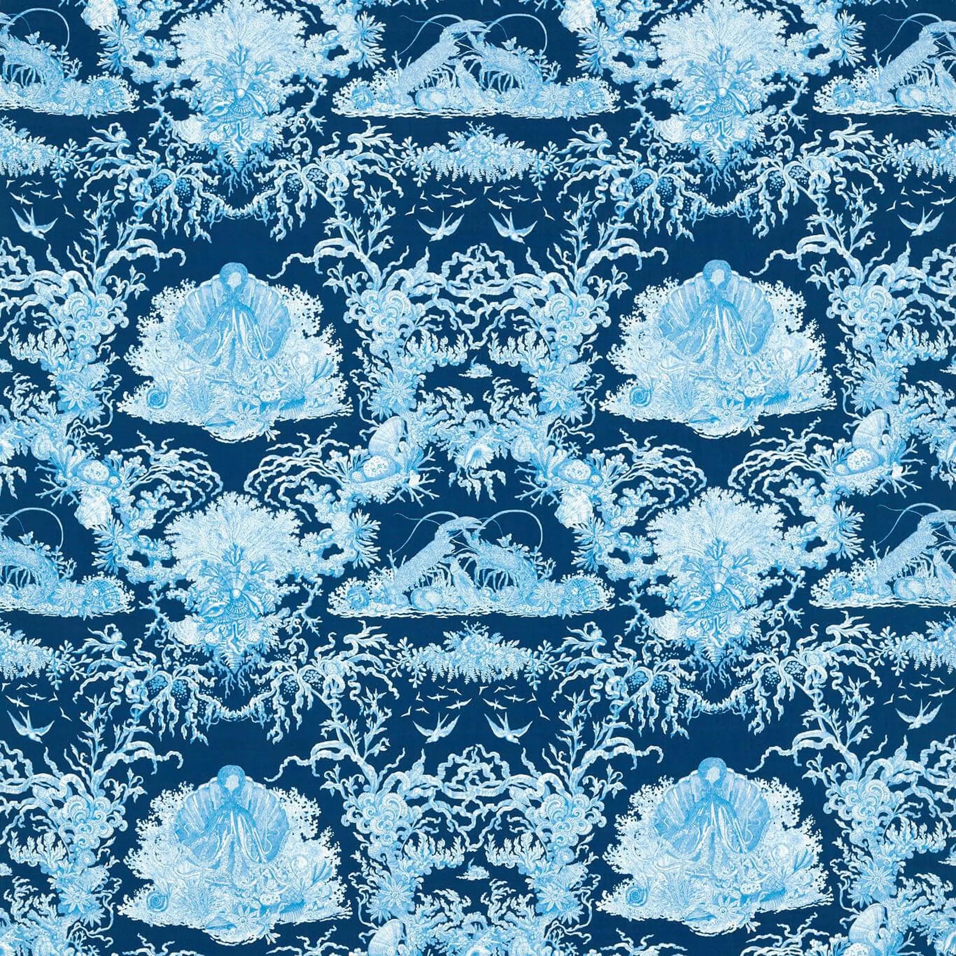 Monterey Bay captures the essence of one of the Pacific Coast`s most breathtaking marine protected areas. Inspired by a toile archive document, the design features lobsters, an octopus, clamshells, and coral intricately interlaced with varieties of kelp. The colourways accentuate the technique, reminiscent of copperplate etching.
