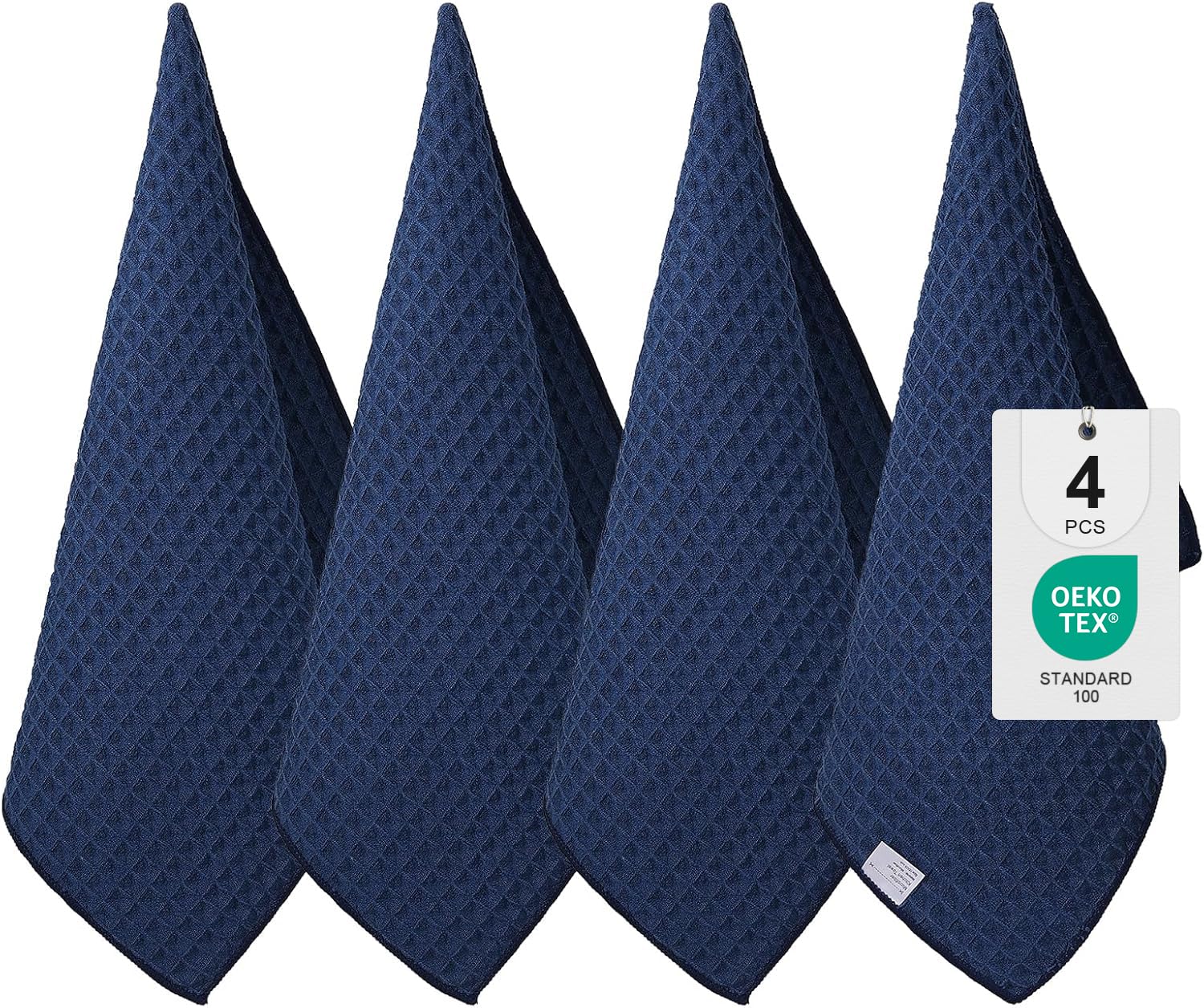 Moosfor Tea Towels, Set of 4 Microfibre Cloths, Super Absorbent Tea Towels, Soft Tea Towels, Cleaning Cloths, Kitchen Towels, 40 x 70 cm, Navy Blue