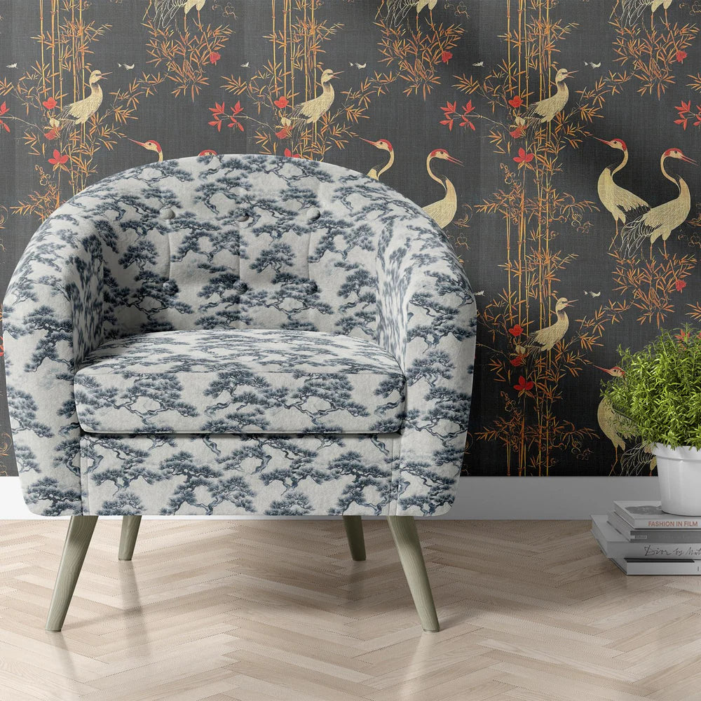 Bring a sense of serene elegance to your interior with Mori No.12, a Japanese-inspired upholstery fabric printed with atmospheric pine trees in cool, shaded indigo. With each brushstroke recalling ink wash painting, the design evokes a misty landscape at dawn—gentle, expansive, and quietly dramatic.