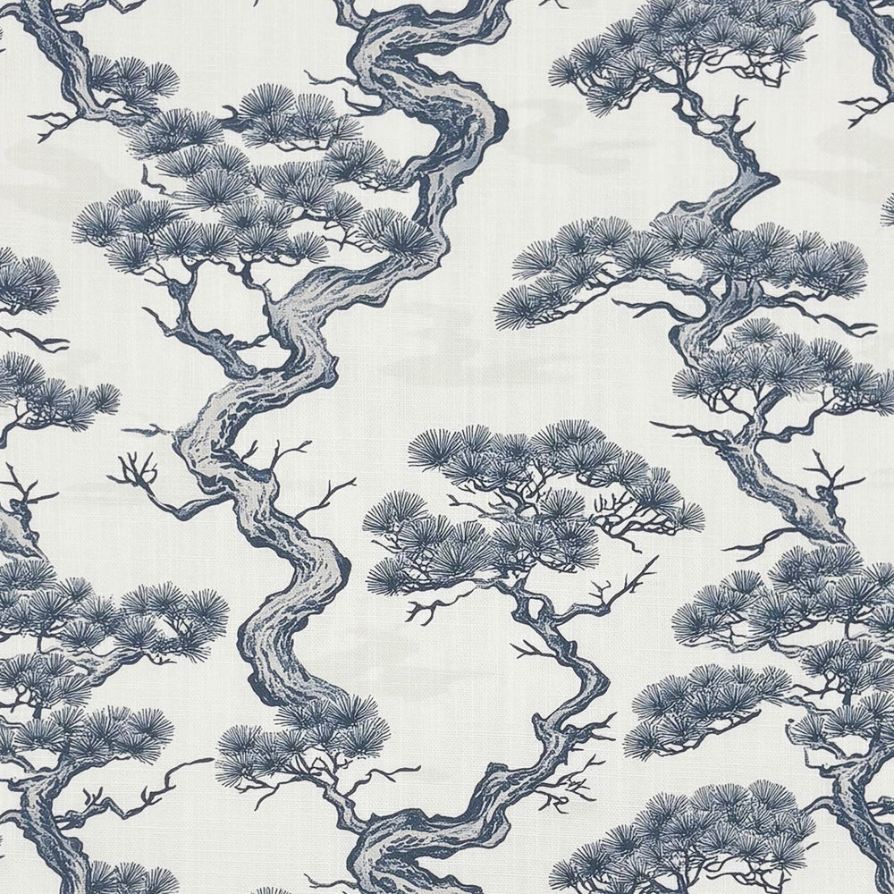 Elevate your interiors with the evocative charm of Mori No.13 Upholstery Fabric, a serene, scenic print inspired by traditional Japanese design. Deeply influenced by bonsai landscapes and heritage ink paintings, this design features intricate pine tree motifs set against a softly off-white ground, brought to life in a deep indigo blue.