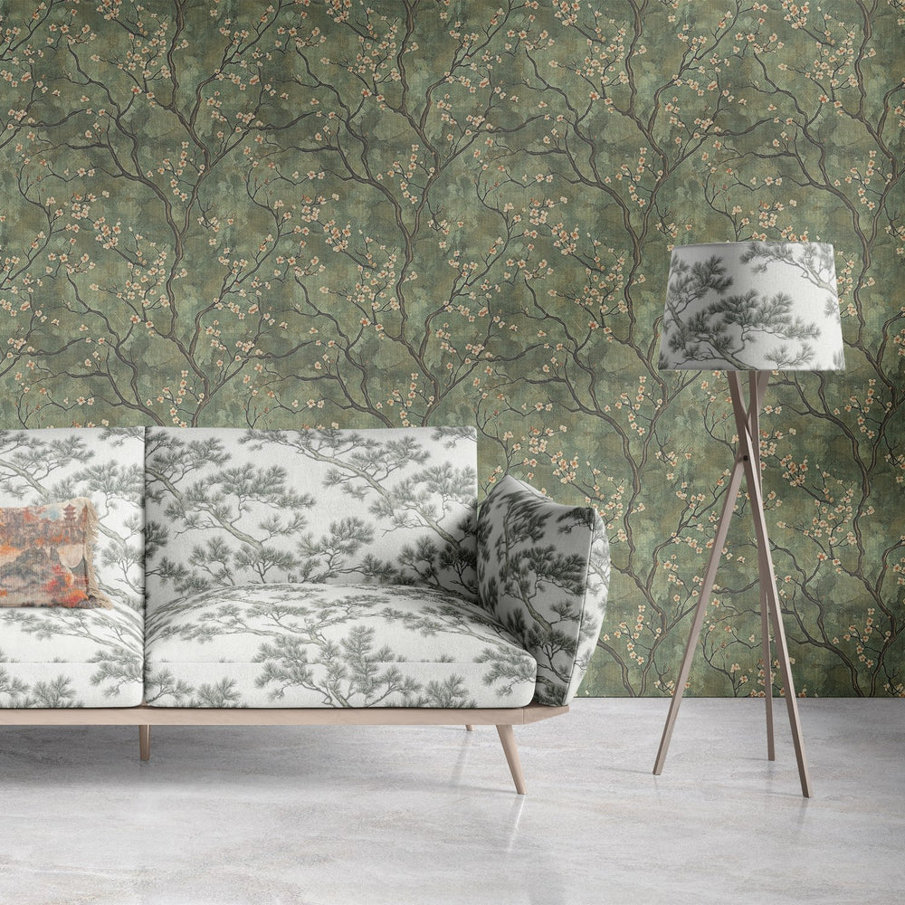 Blending the serenity of nature with refined minimalism, Mori No.9 Upholstery Fabric is a tranquil and understated design drawn from traditional Japanese aesthetics. Fine pine branches in soft graphite grey stretch elegantly across a pale background, echoing the brushwork of antique ink paintings. This design captures a moment of stillness—perfect for those seeking quiet elegance and organic detail in their interiors.