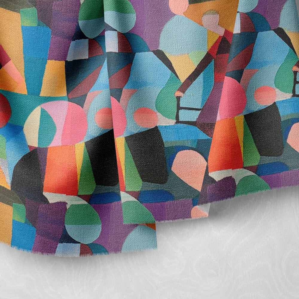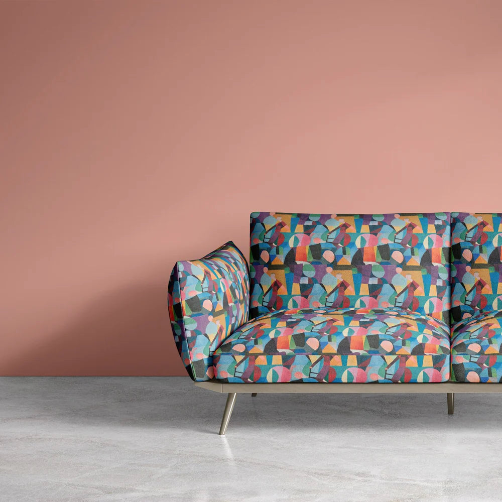 Named after the historic French village of Mougins, where Pablo Picasso spent the final years of his life, Mougin No.1 Upholstery Fabric brings that same spirit of creative legacy into your home. Inspired by the geometry and colour language of Picasso’s later works, this richly artistic upholstery fabric combines cubist layering with vibrant jewel tones – from deep amethyst and blush pink to chartreuse, ochre and turquoise.