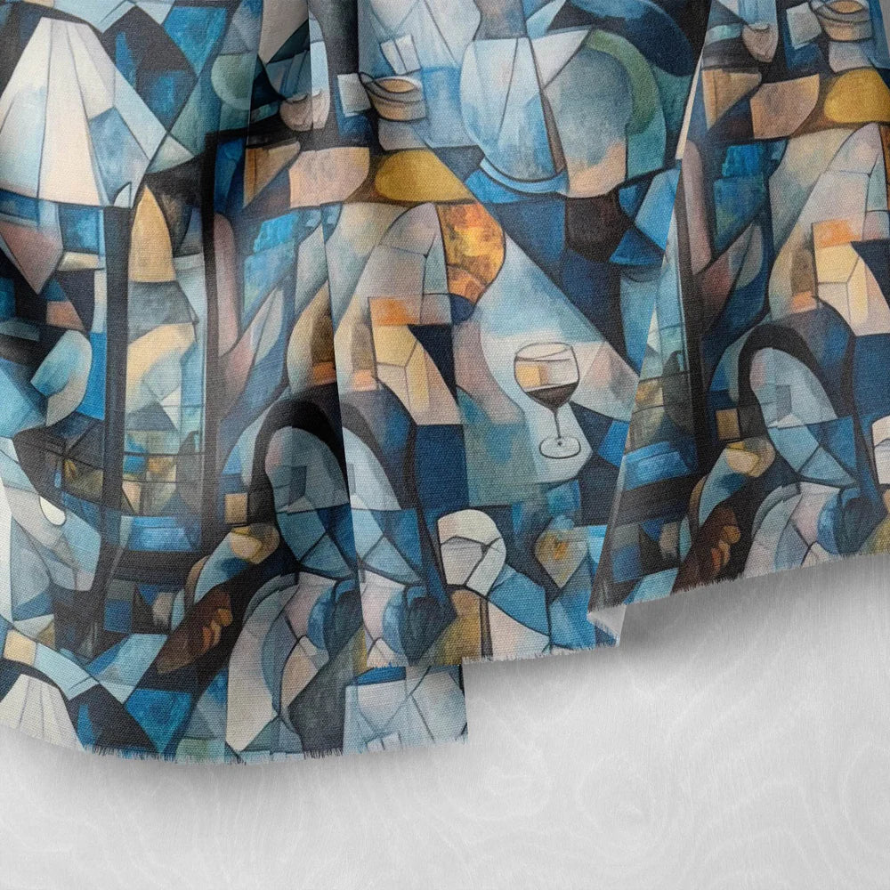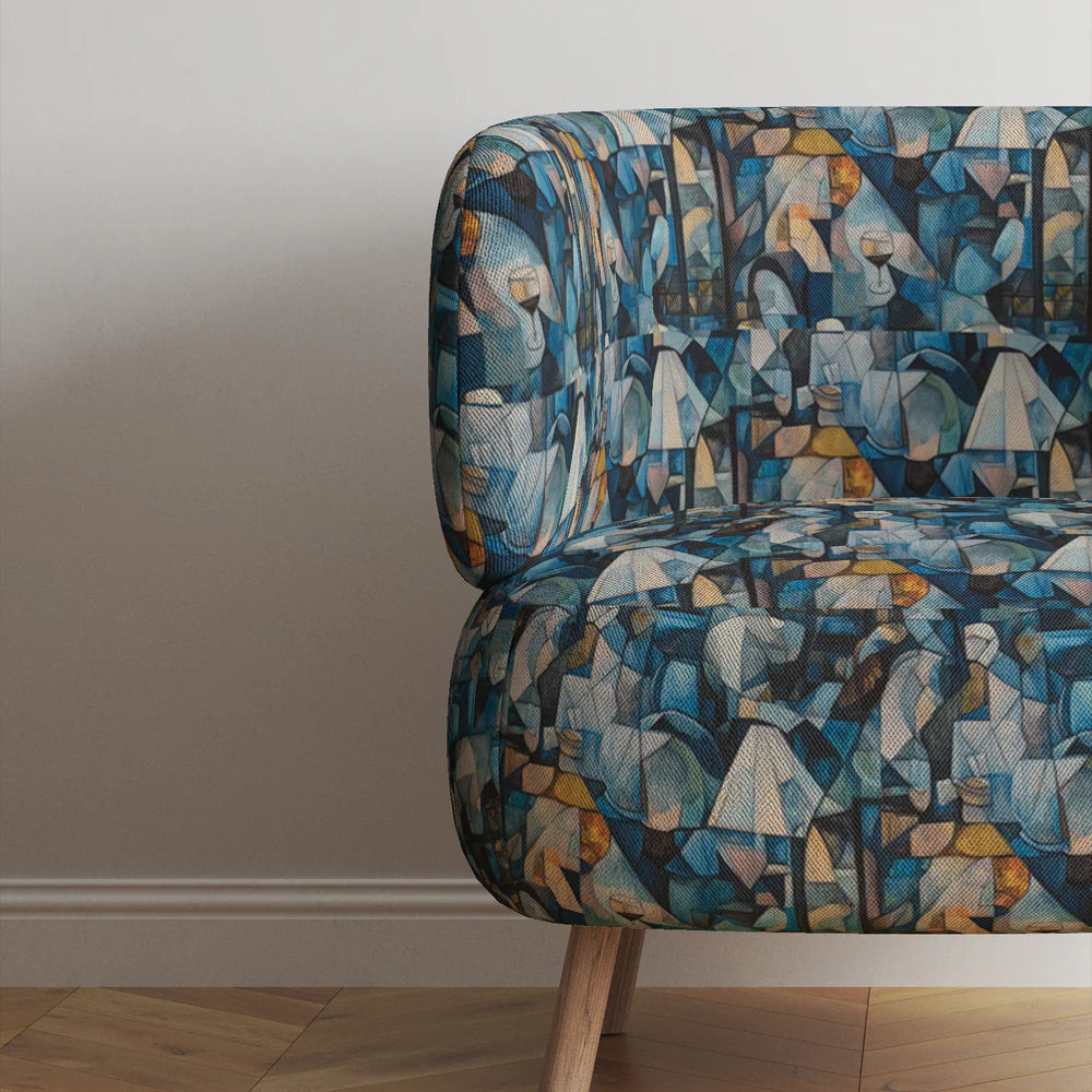 Inspired by the intimate still life motifs found throughout Picasso’s Mougins period, Mougin No.18 Upholstery Fabric reimagines classic objects—lamps, bottles, and goblets—through a fractured, geometric lens. With deep blues, ivory, ochre and charcoal tones, this design offers painterly drama while maintaining a moody, refined palette.