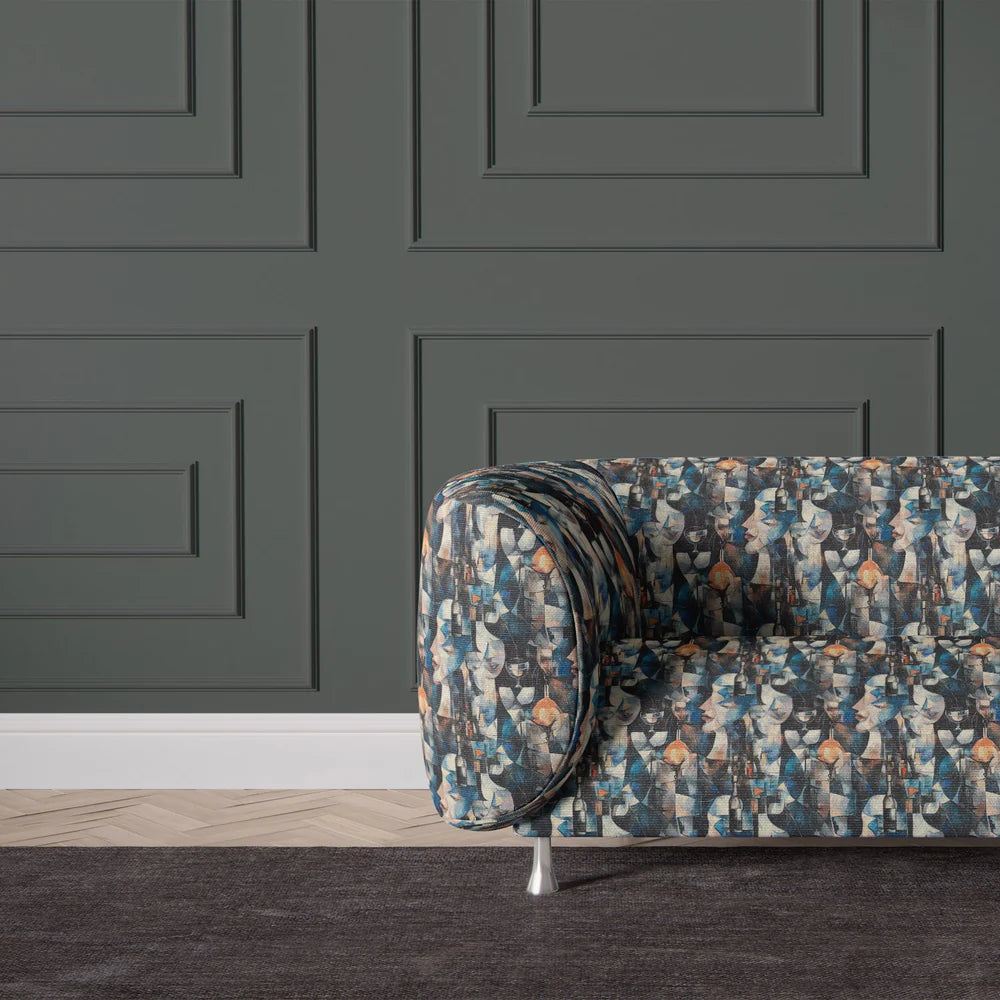 Infused with the romantic spirit of Picasso’s Mougins retreat, Mougin No.20 Upholstery Fabric offers a sultry take on cubist expression. Swirling faces, wine glasses and bottles form a lyrical composition in shades of midnight blue, chalk white and candlelit amber. The atmosphere is distinctly moody, evocative of late-night salons and artistic soirées.