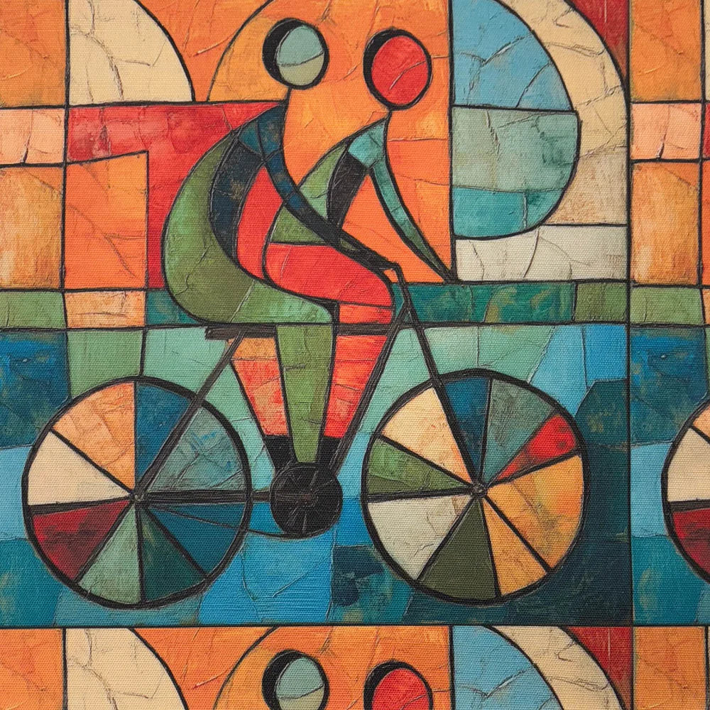 Capture the motion and artistic spirit of the South of France with Mougin No.27 Upholstery Fabric, a vibrant celebration of movement, form, and cubist influence. This energetic multicoloured design features an abstract cyclist motif, paying homage to the town of Mougins—where Picasso spent his later years creating bold, expressive works.