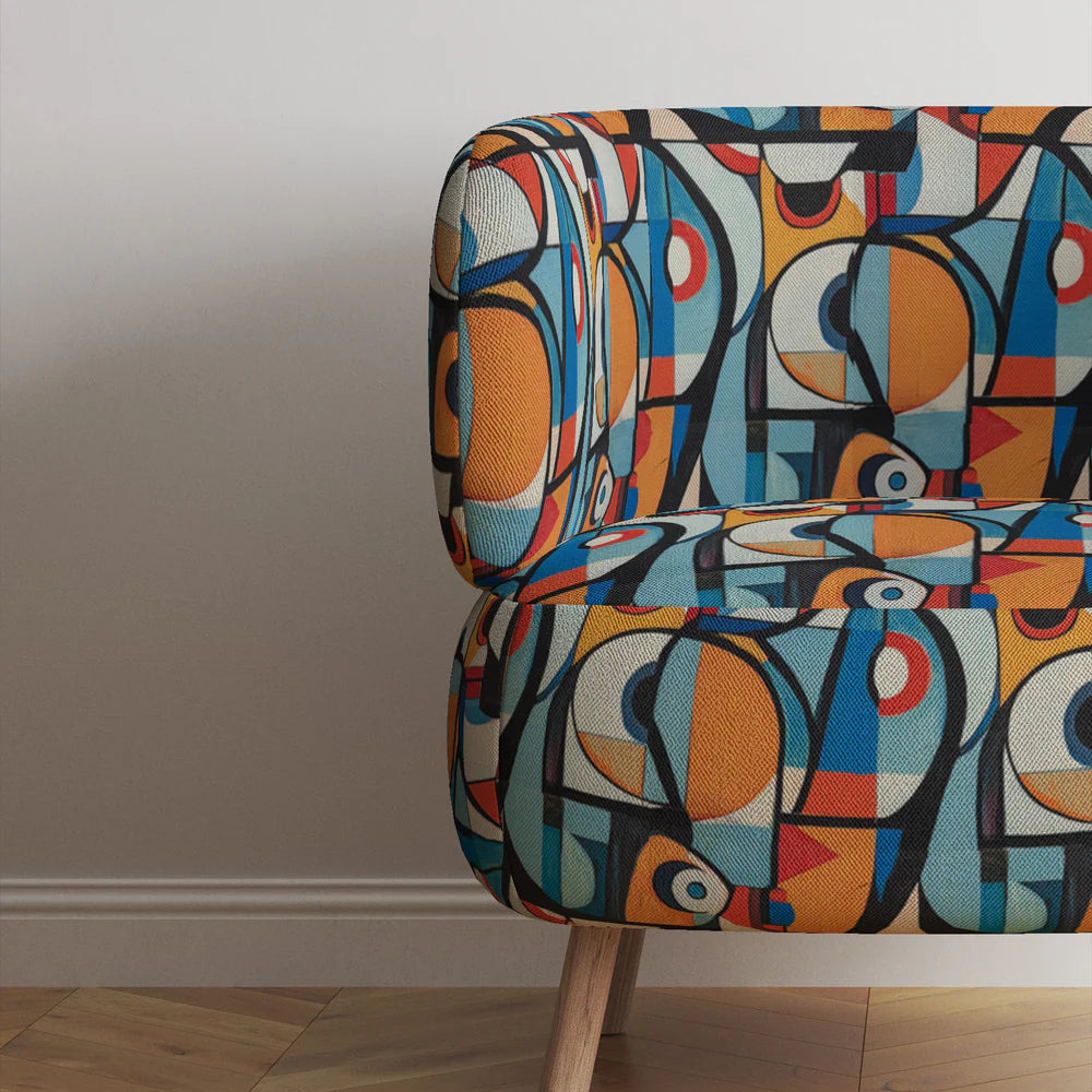 Mougin No.8 Upholstery Fabric captures the visual rhythm of Picasso’s Cubist period, reimagined in an arresting blue and orange palette. Featuring fragmented facial forms, geometric abstractions and expressive layering, this artwork-turned-textile is a vibrant homage to the painter’s late-life creativity in his Mougins studio.