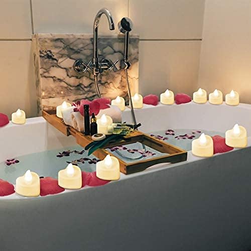 Heart shape LED tealight candle: our romantic tealight candles are designed in heart shape, they are beautiful and the nice substitute of real candle; Tealight in heart shape with bright light and dark red rose petals can easily bring you romantic atmosphere