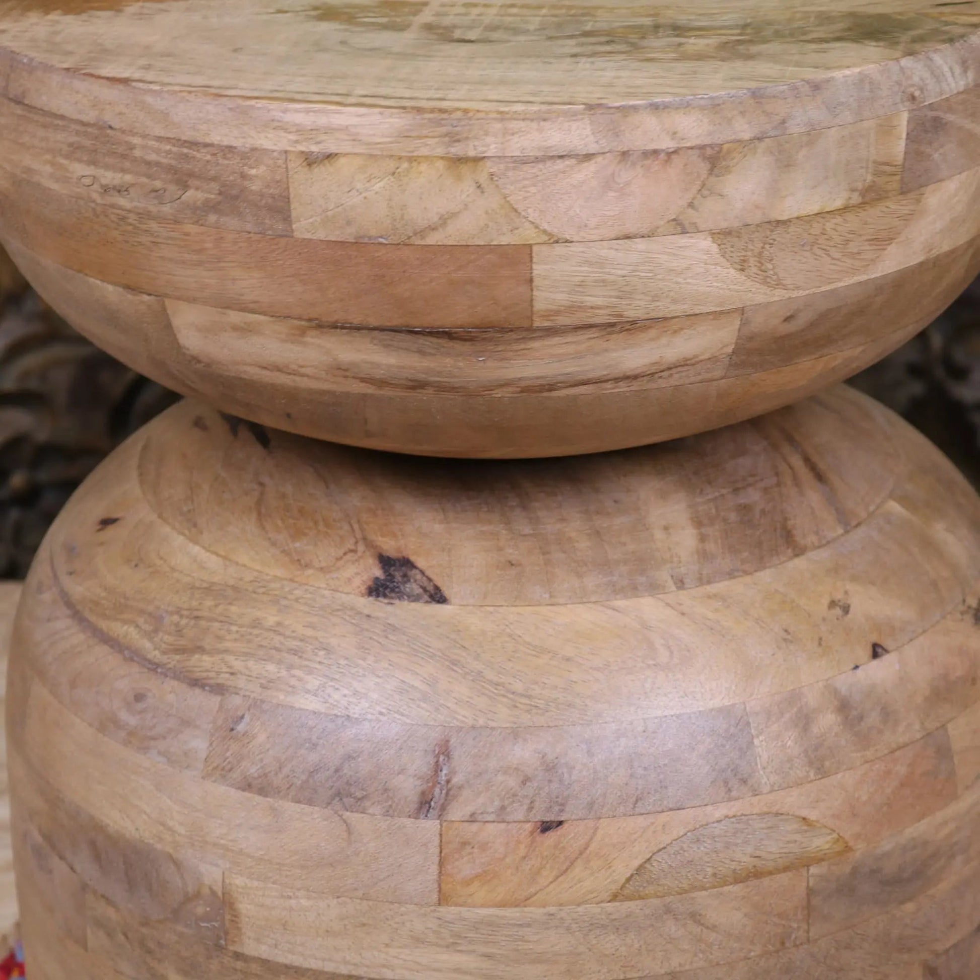 Introduce the Narmada Swirl Mango Wood Side Table into your home and embrace the allure of natural beauty. This compact and curvaceous piece is a masterpiece of handcrafted furniture, showcasing the exquisite swirling grain patterns unique to mango wood.