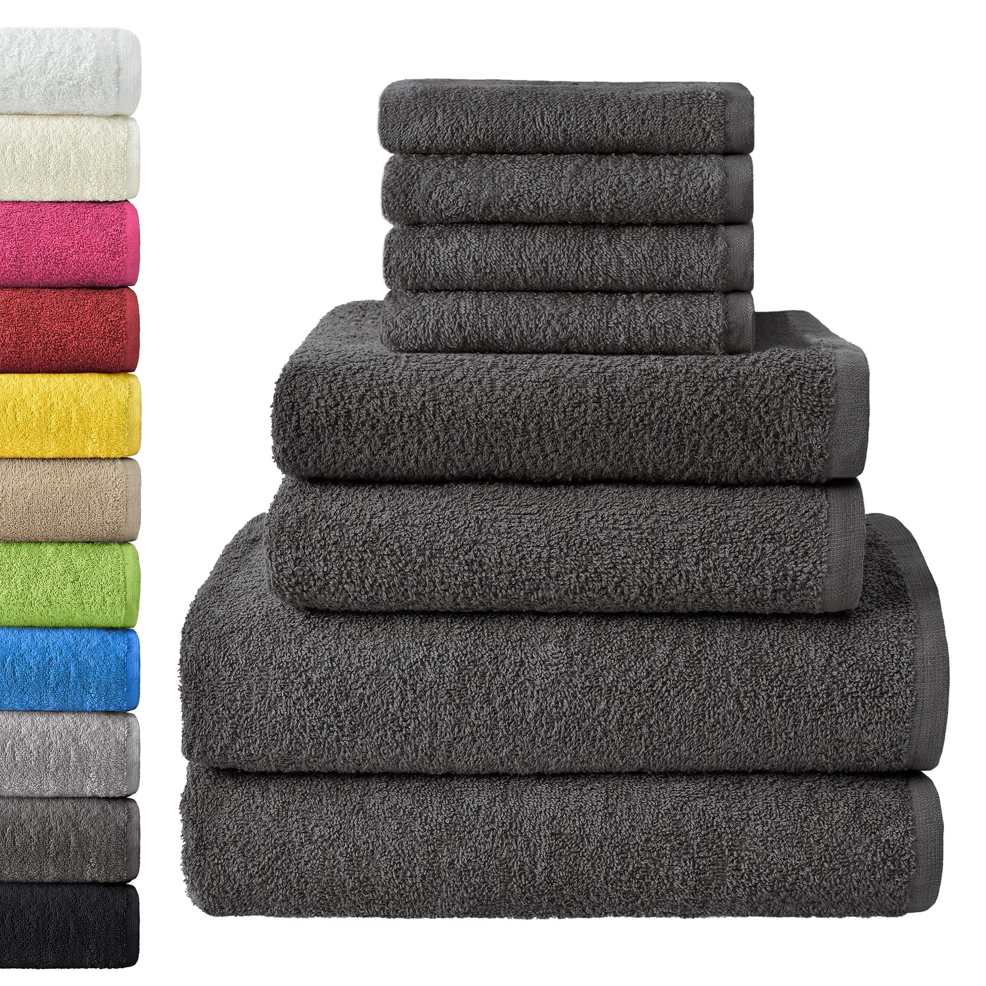 NatureMark 8-Piece Terry Towel Set - 100% Cotton - Soft & Absorbent - 4 Guest Towels (30 x 50 cm), 2 Hand Towels (50 x 100 cm), 2 Bath Towels (70 x 140 cm) - Grey